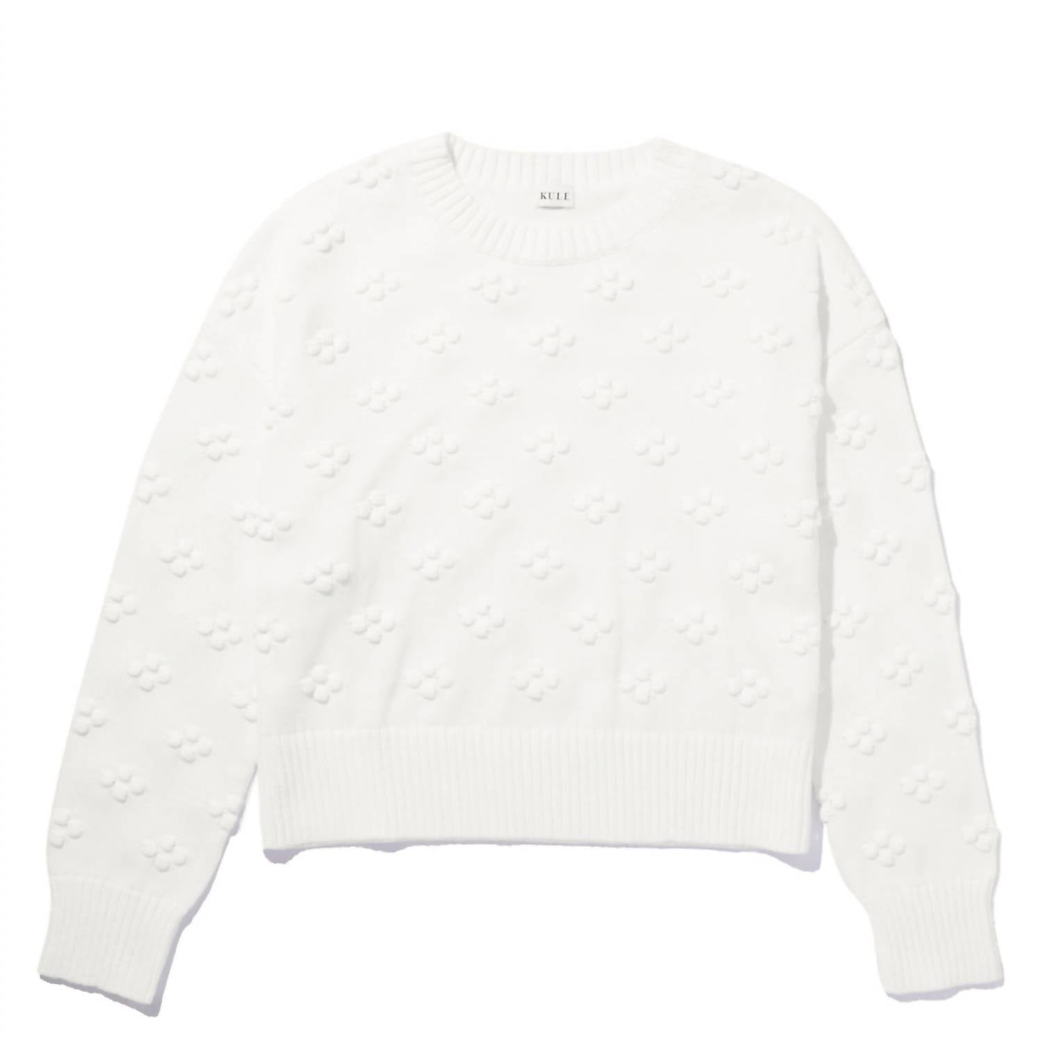 Stay warm and stylish in this versatile and effortlessly cool knitwear staple. Wear it alone or layered, it's the perfect sweater for the season and you'll wish you had it in every color. Elevate your winter wardrobe with the women's Bubble Sweater by KULE, a perfect blend of calm and fun style. This white, long sleeve sweater features a textured popcorn stitch crafted with 98% cotton and 2% spandex, offering comfort with slight stretch. Designed with a crewneck and hip-hitting fit, it pairs exceptionally well with your favorite jeans or shorts. Closure is pull on, and for longevity, dry clean only. Imported from a country known for quality.