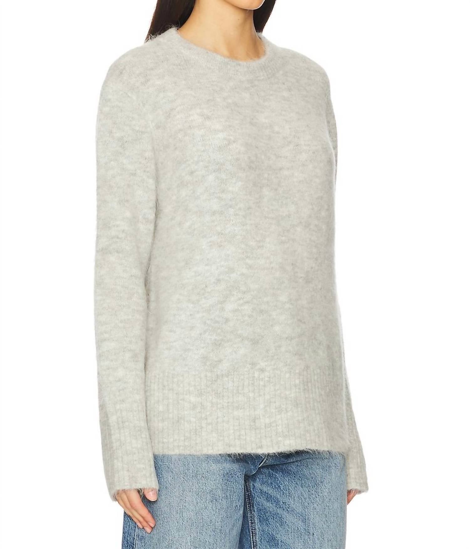 Experience the perfect blend of comfort and style with this trendy crew neck sweater, designed to effortlessly elevate your wardrobe. Pair it with your favorite denim and loafers for the perfect look. Introducing the Ivy Sweater by PISTOLA, a timeless piece in soft grey perfect for any wardrobe. This crewneck pullover features a textured design with long sleeves and dropped shoulders for a relaxed fit. Composition includes 55% Alpaca, 24% Acrylic, 19% Nylon, and 2% Spandex, ensuring comfort and warmth. Closure: Pull on. Care: Machine wash. Ideal for women seeking a blend of style and coziness.