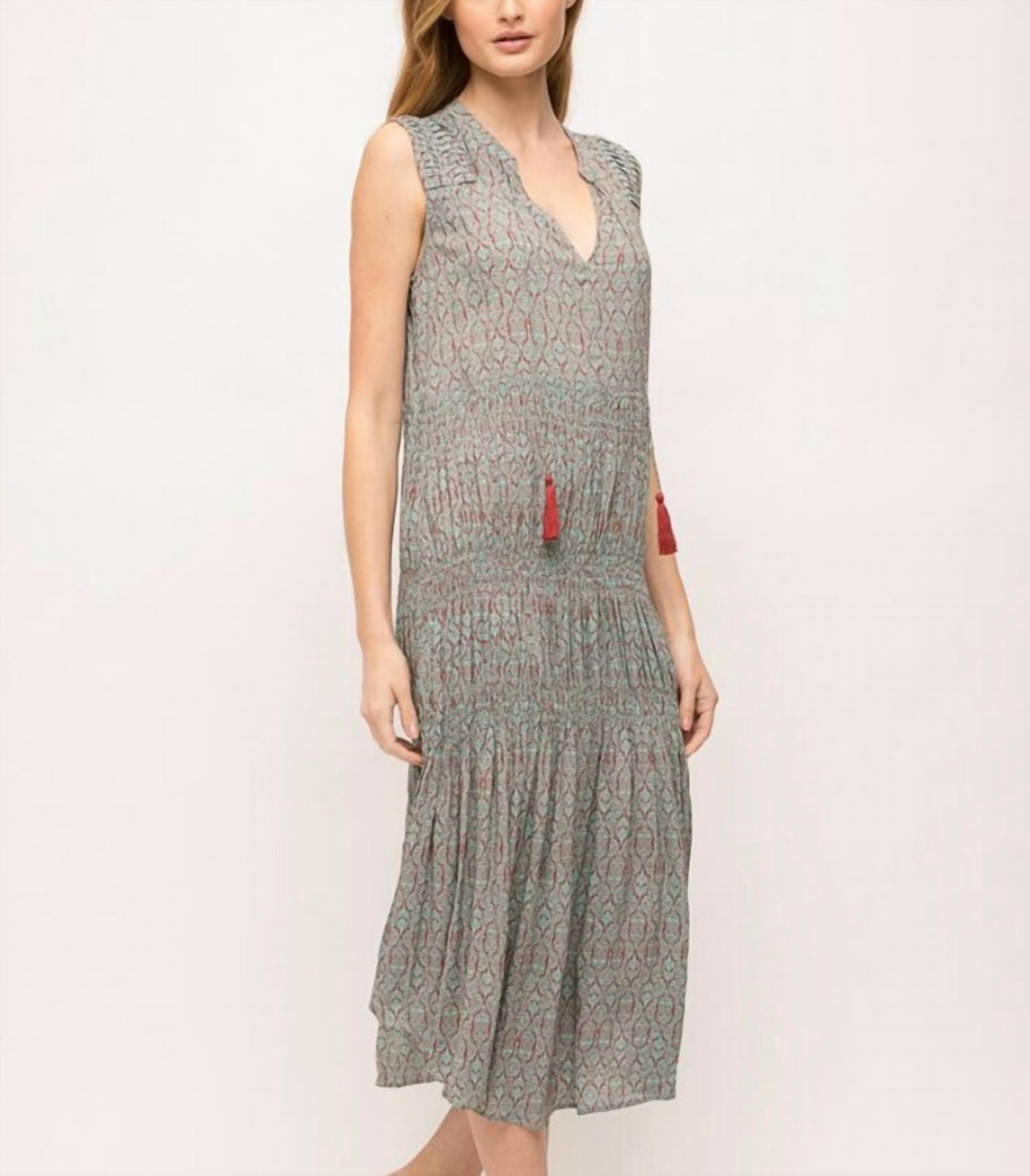 A midi dress so versatile, your options for wearing it are endless. Step into summer with the Mystree Women's Maxi Boho Dress in a refreshing mint hue, perfect for any vacation. This sleeveless dress features a patterned V-neckline and an A-line silhouette, epitomizing boho chic style. Designed with a pull-on closure for easy wear. Care instructions are not available for this garment.