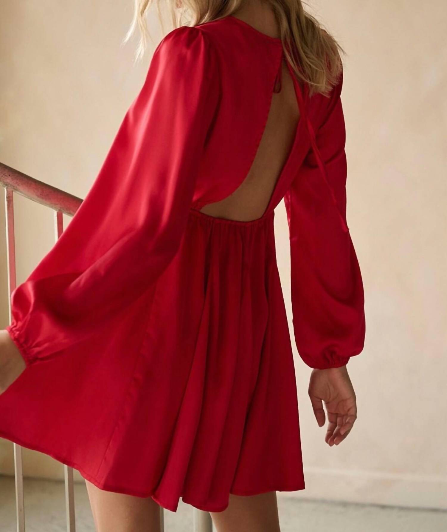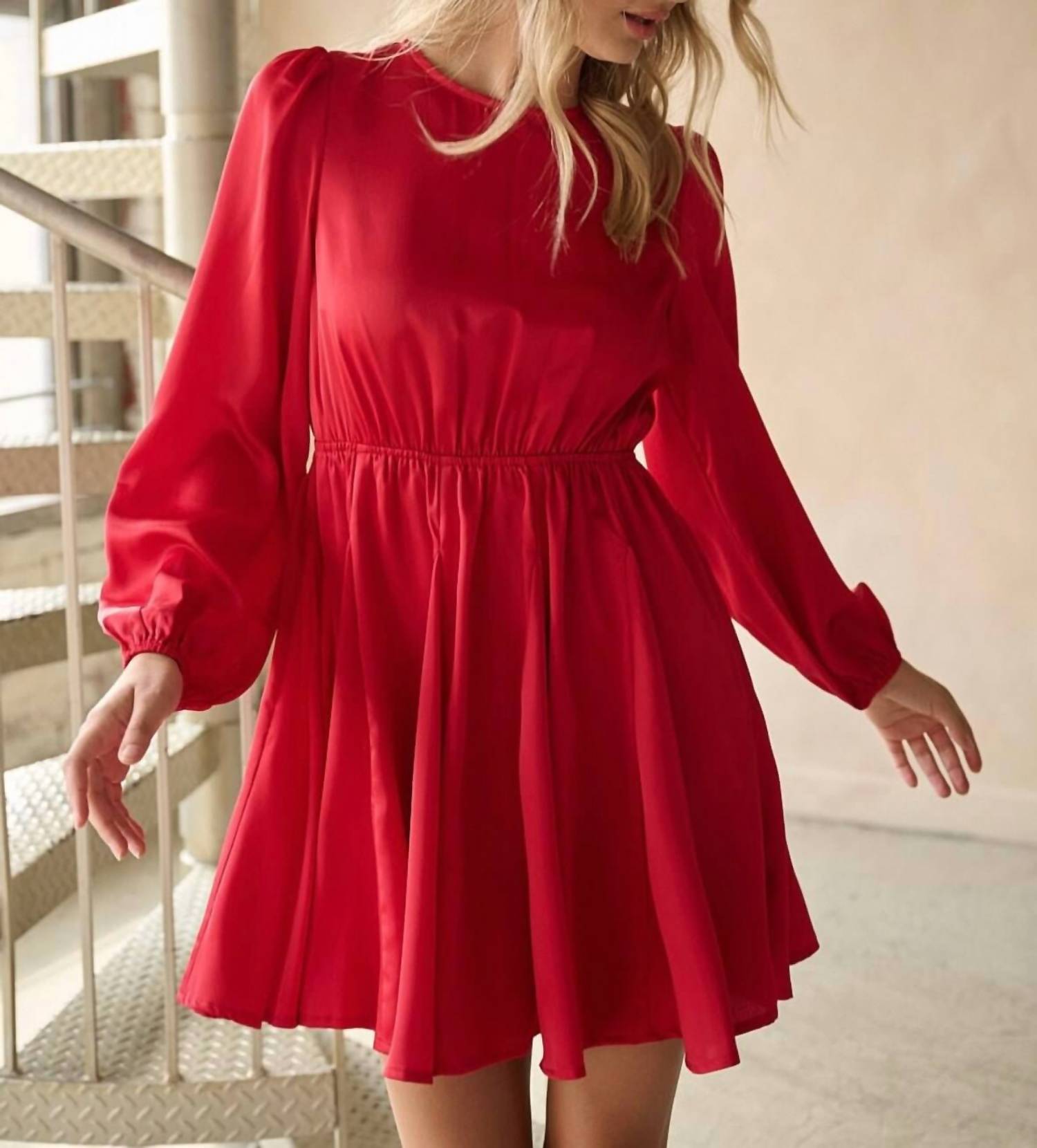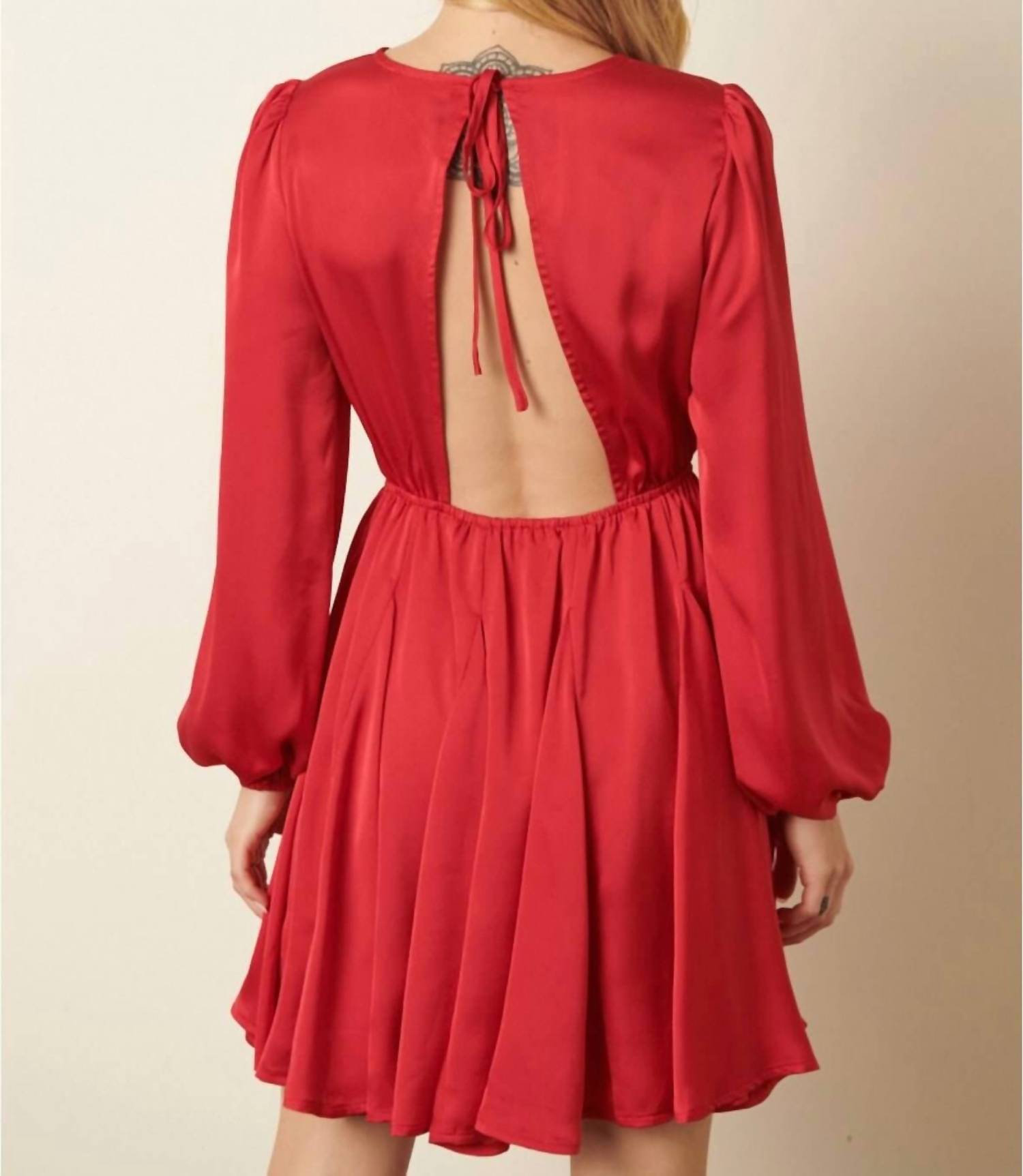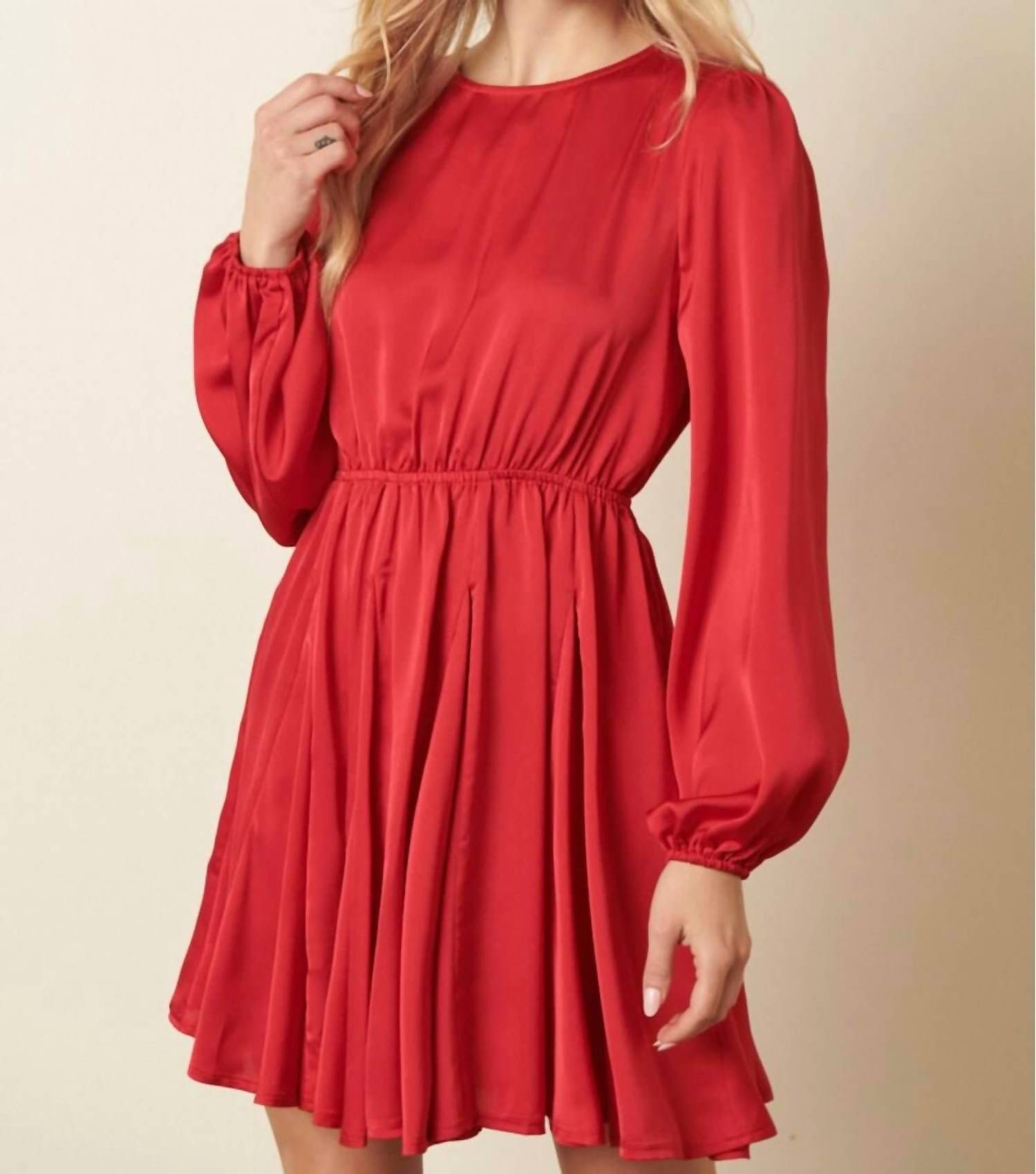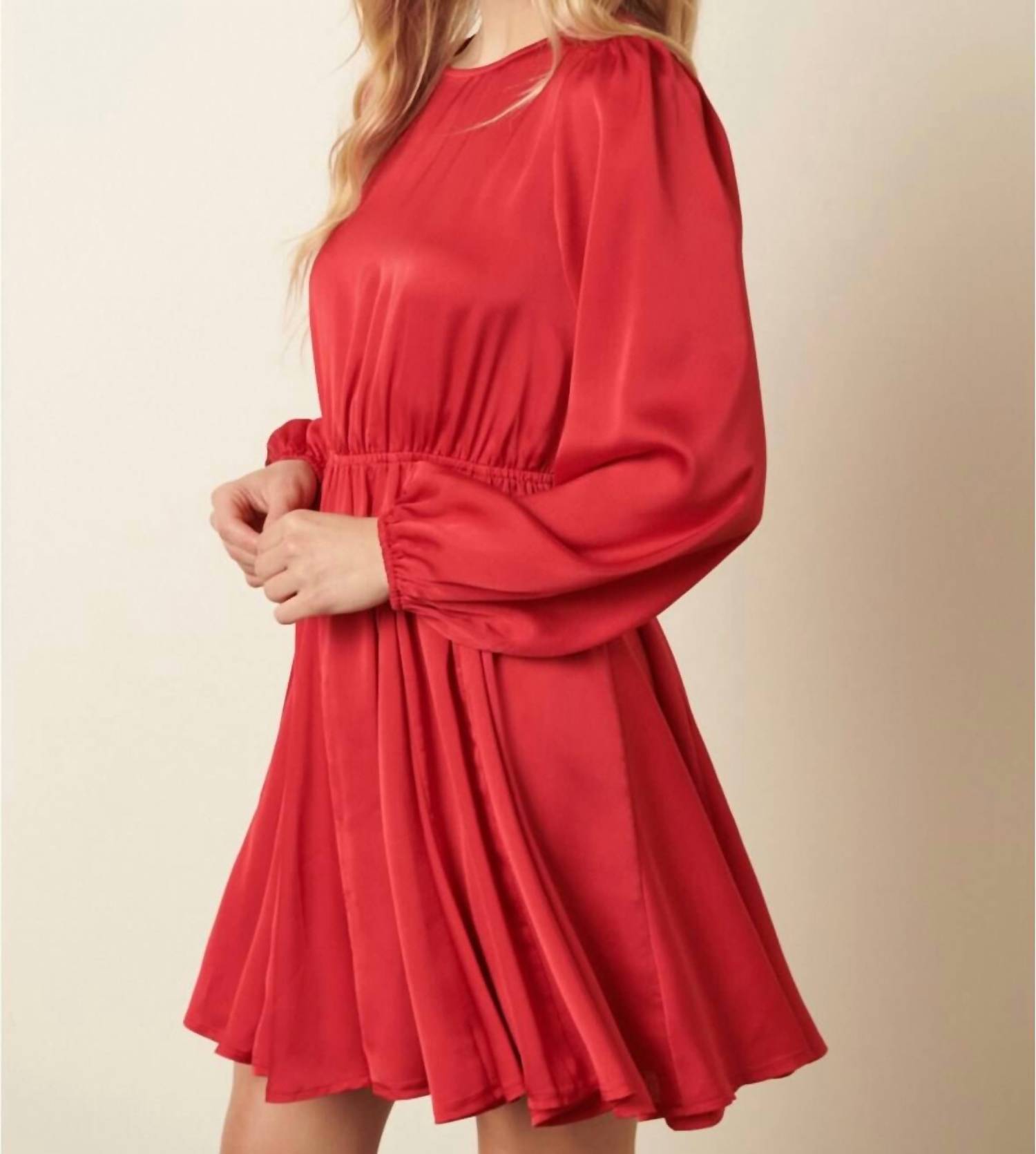 The kind of easy and flattering dress you'll be reaching for all season long. Introducing the Holly Satin Dress by Mittoshop, a striking choice for any special occasion. This mini-length dress features long sleeves and a flattering crewneck, complete with a unique spaghetti tie closure at the back. Crafted from 100% polyester, its satin woven fabric enhances the solid color design available in red and blue. Enjoy a true-to-size fit with a godet detail skirt, easily cared for with machine wash instructions.
