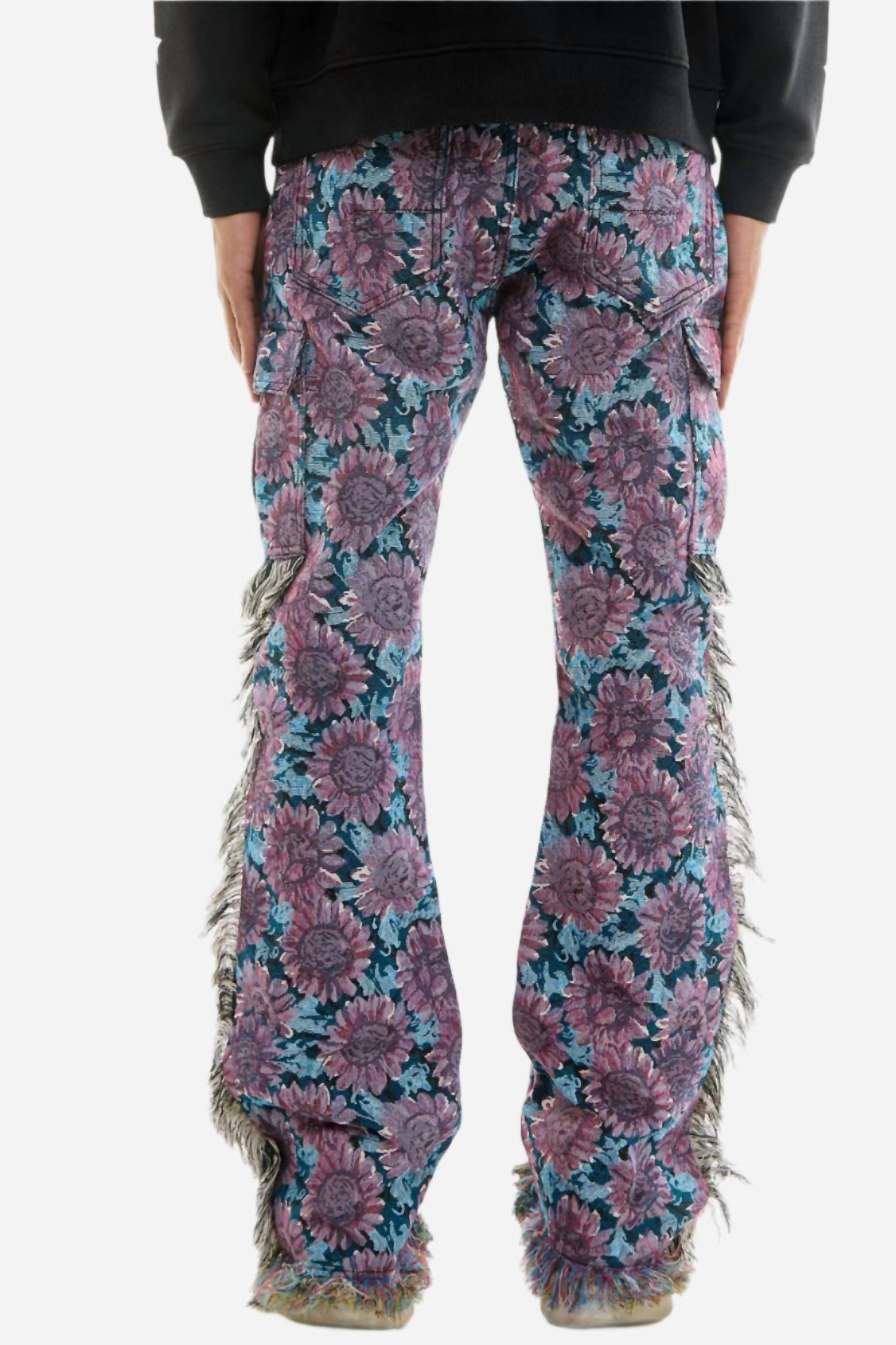 Elevate your spring wardrobe with the Floral Tapestry Cargo Pants from KDNK, featuring a vibrant cream and red floral design. Tailored for women, these wide leg pants offer a relaxed fit and a stylish maximalist trend, perfect for holiday parties. Crafted from 98% Cotton and 2% Spandex, they provide comfortable wear and a secure button closure. Easy to maintain, simply machine wash and tumble dry.