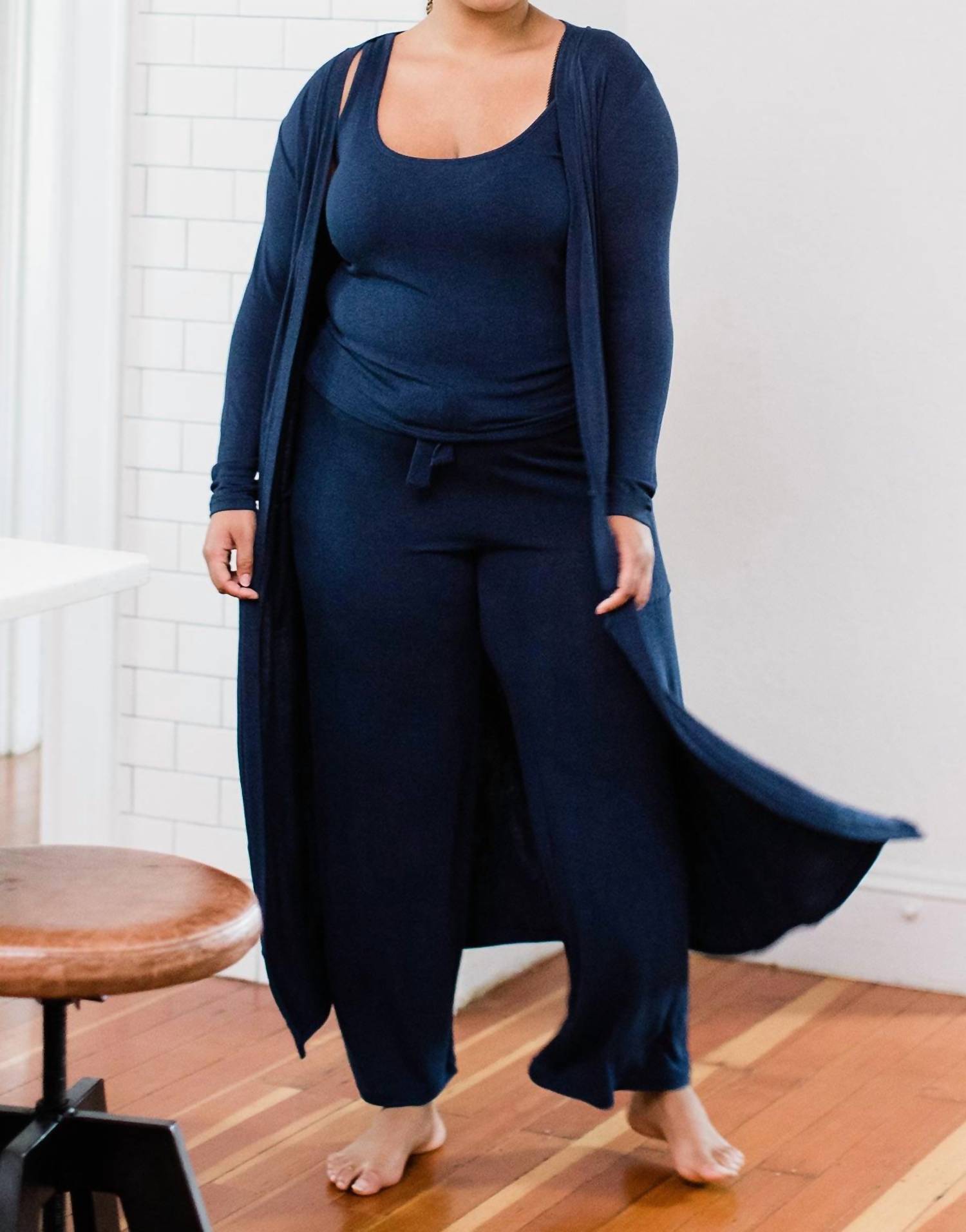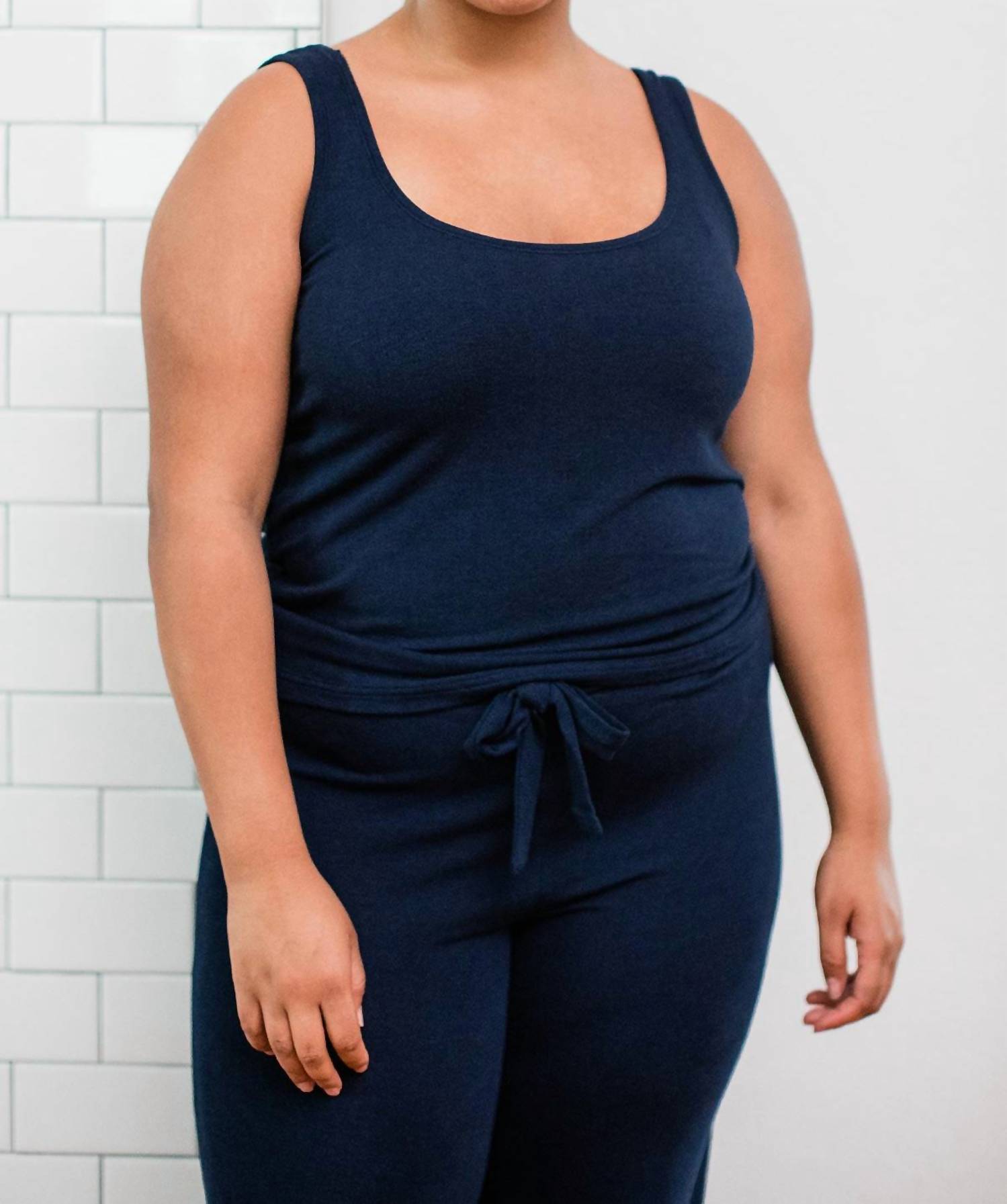 This classic tank top is perfect for layering and cute enough to wear on its own. Meet the Claire Bamboo Sweater Tank Top by Yala, an exquisite piece for luxurious lounging available in Navy Heather. Crafted from 96% viscose sourced from USDA Certified Organic Bamboo with 4% spandex, this sleeveless pull-on top features a scoop neck and back, and a mid-thigh hem. The luxe fine gauge sweater knit is Oeko-Tex 100 Certified, ensuring no residual chemicals, and it's dyed with low impact, AZO-free dyes. Designed for ease of care, it can be machine washed and laid flat to dry.