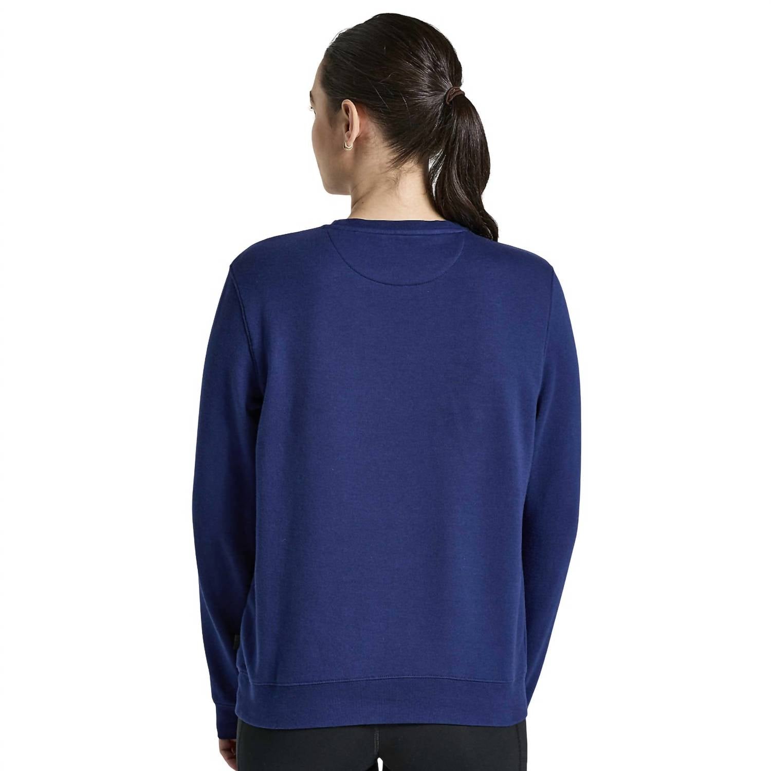 Brushed back cotton fleece. Woven logo mark in side seam. Rib knit cuff and hem. Model wearing a size Small.