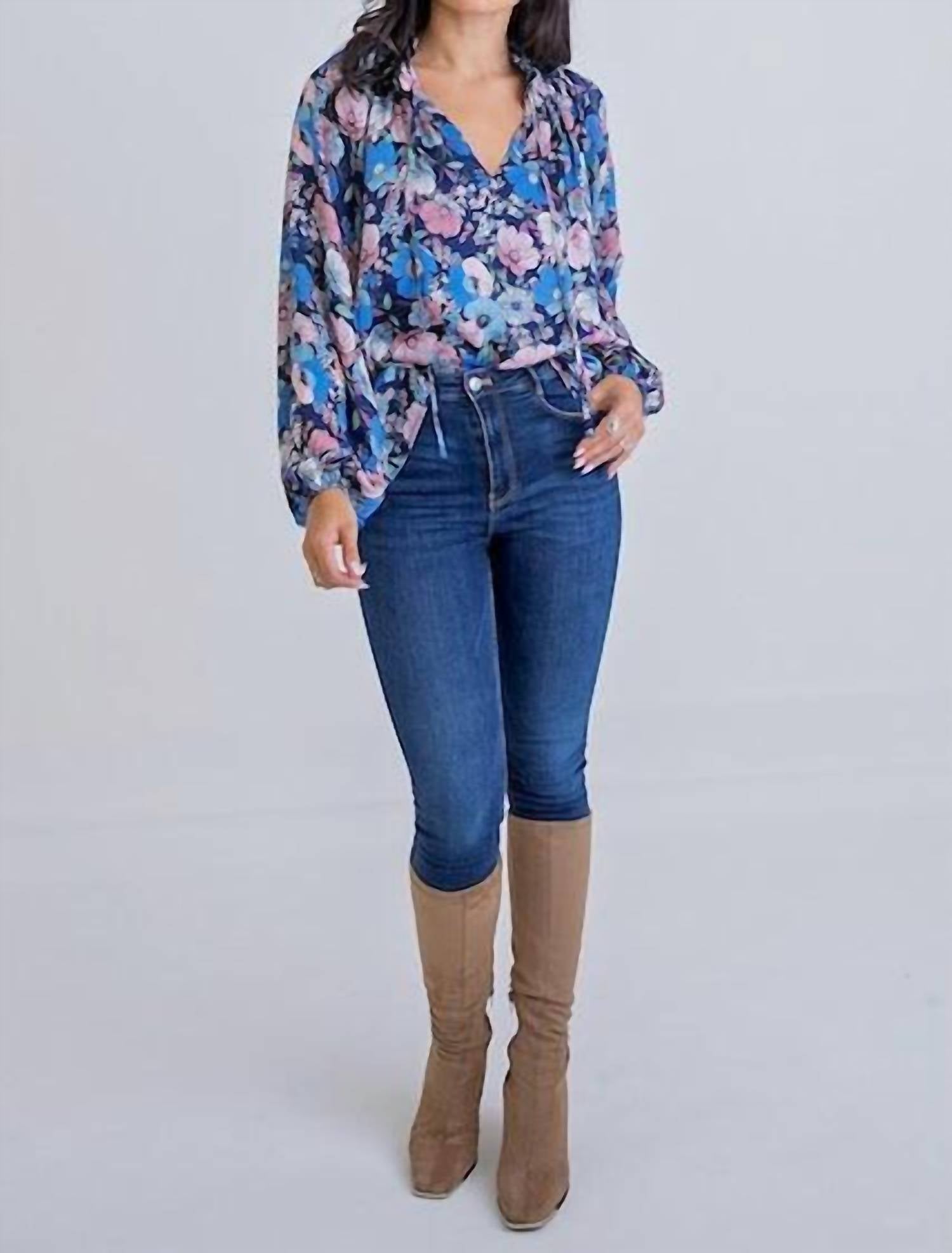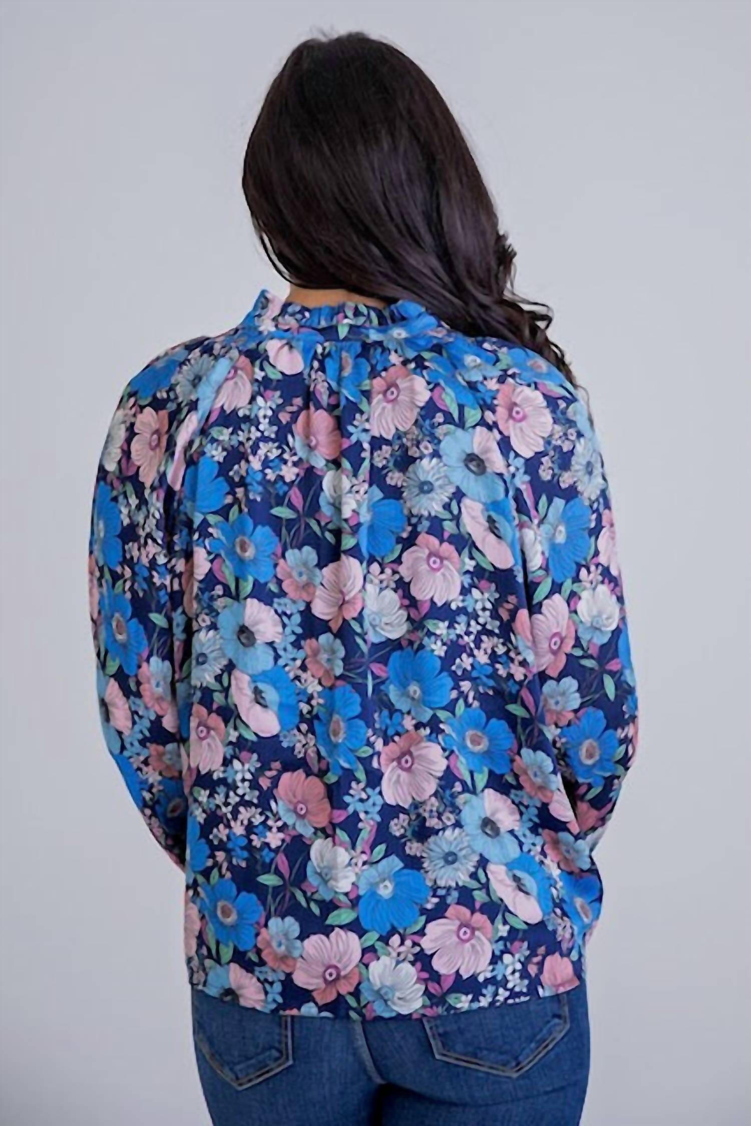 Pair this with your favorite jeans and slides for your next girls night out. Elevate your wardrobe with the Floral Vintage V Neck Top by Karlie, a nostalgic piece that exudes timeless charm. This long sleeve blouse in a vibrant floral pattern showcases elegant balloon sleeves and a delicate ruffle neck for a touch of vintage allure. Made from polyester, it features a comfortable pull-on closure. Care: Hand wash and lay flat to dry.