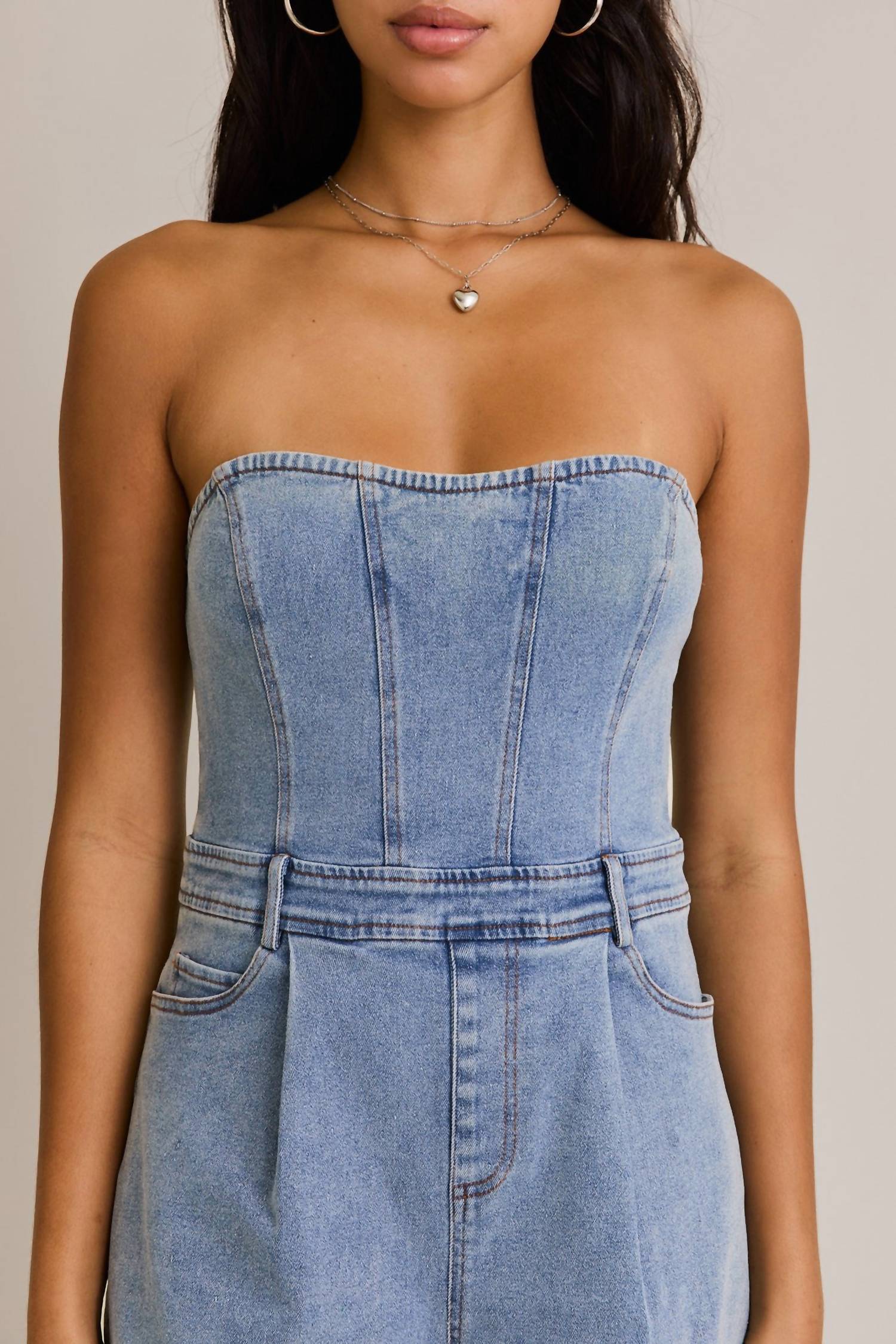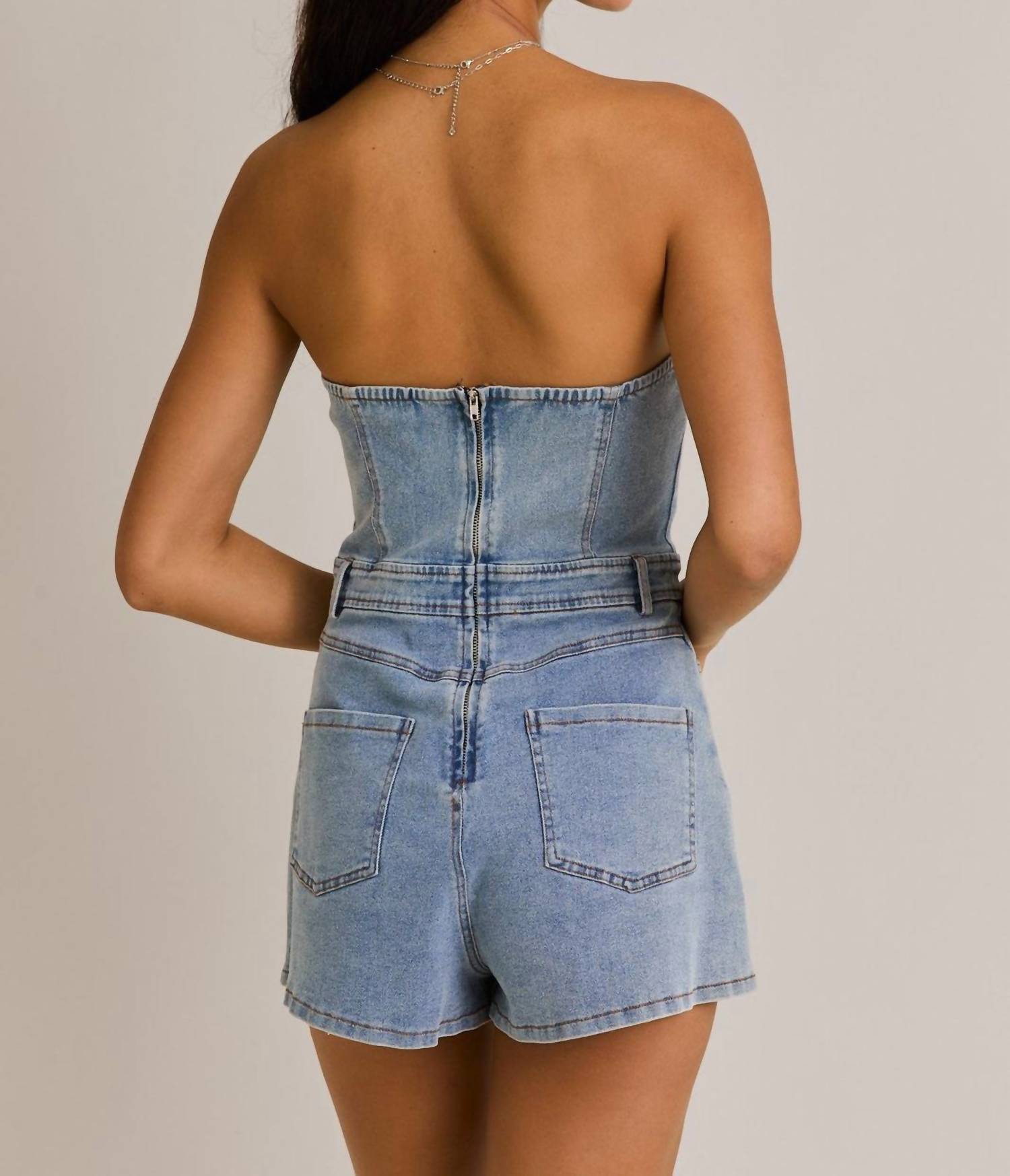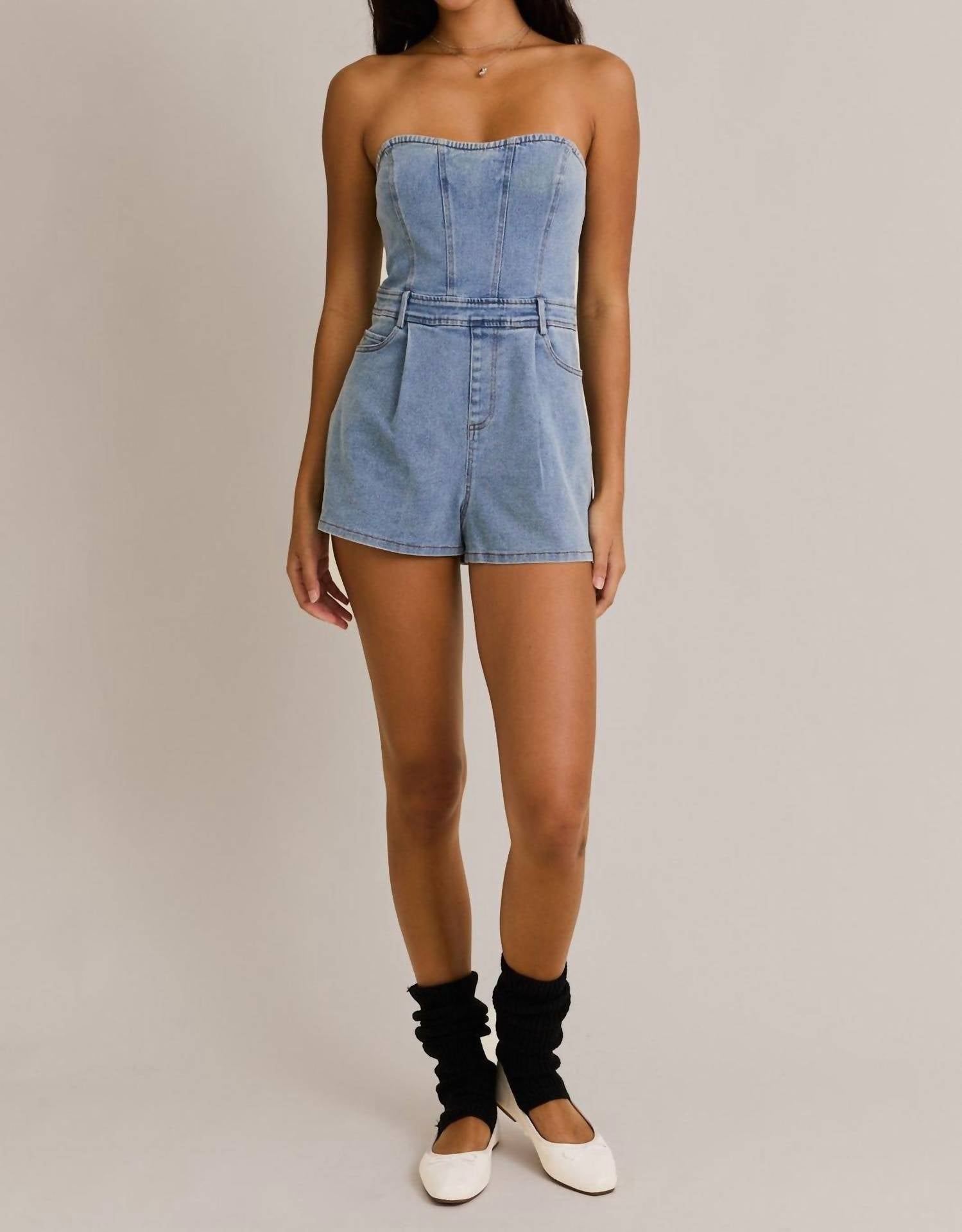 Le Lis - Strapless Denim Romper