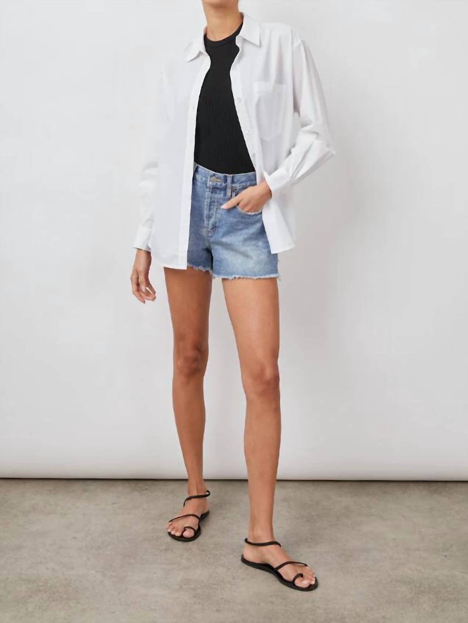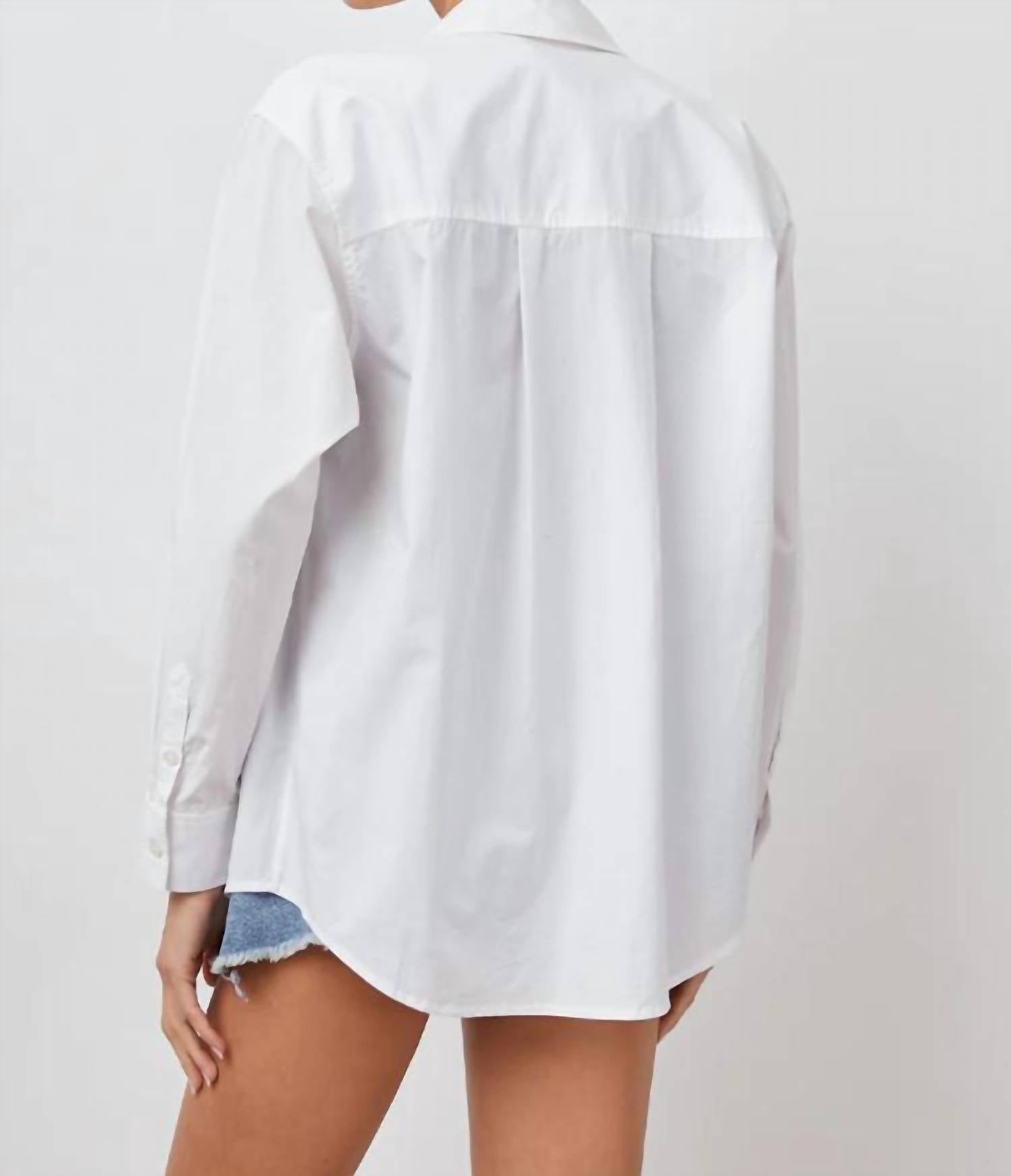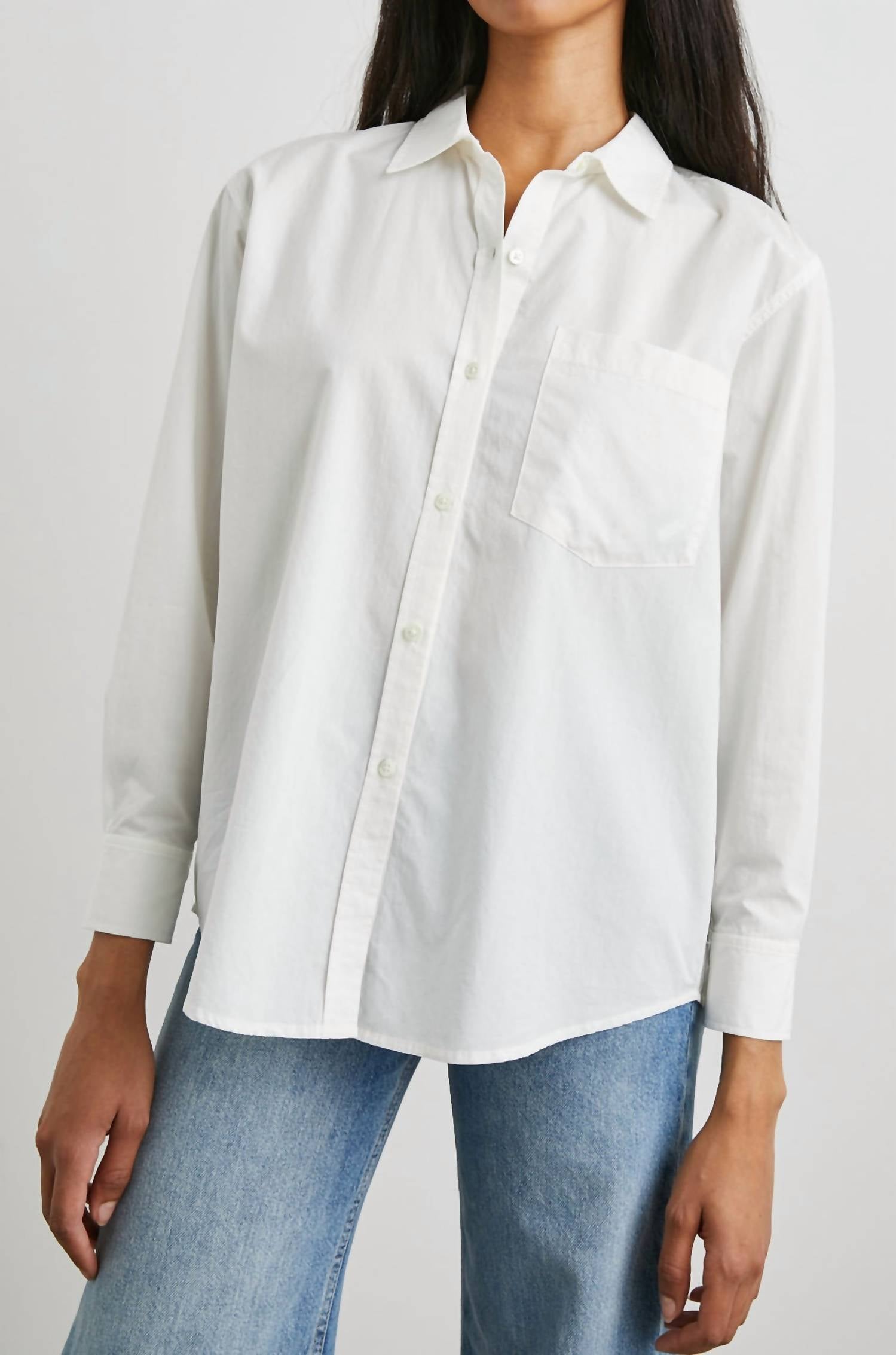 A classic button down shirt that will never go out of style. Elevate your wardrobe with the Arlo Button-down Shirt by Rails, a classic piece perfect for both work and weekend outings. This women's shirt features long sleeves and is crafted from a cotton blend, combining 55% Organic Cotton and 45% Tencel™ for a soft, breathable feel. It comes in a timeless solid white with a stylish collar and chest patch pocket, adding a touch of sophistication. Imported and finished with a button closure, this shirt requires dry cleaning to maintain its crisp look.