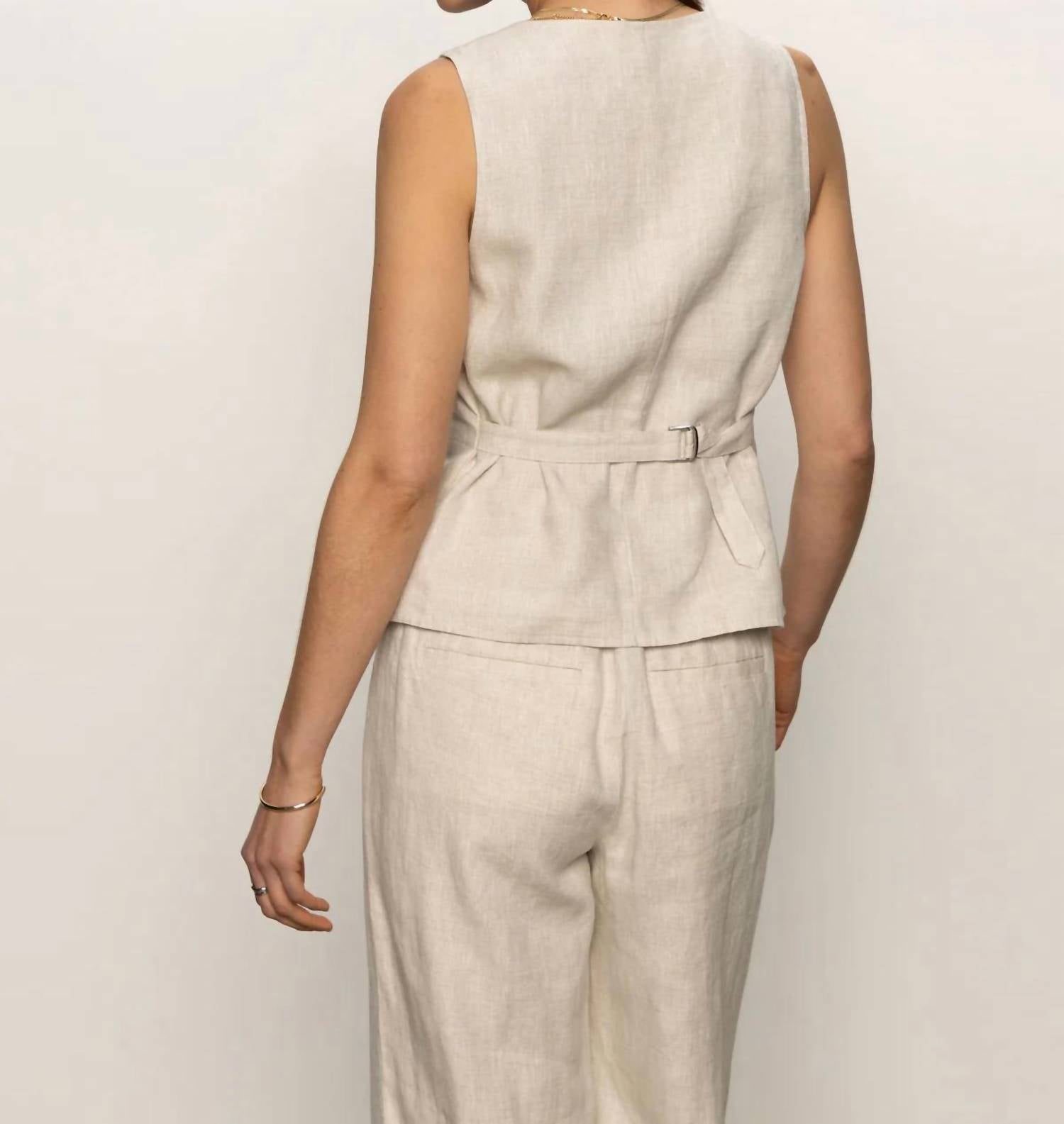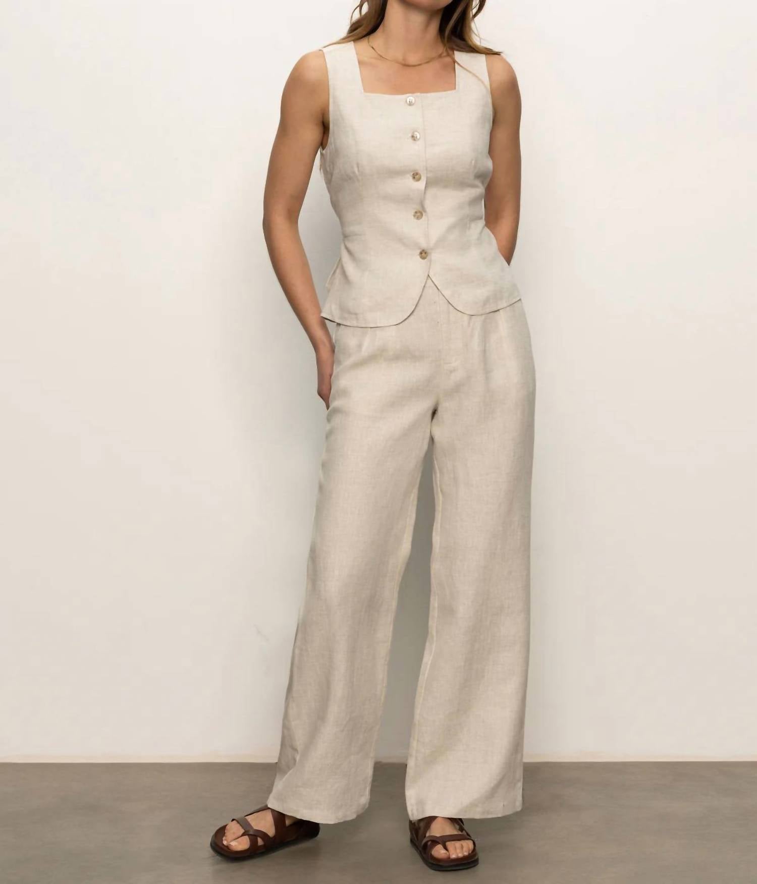 A vest so versatile you can mix and match it with almost any outfit and it will feel brand new every time. Elevate your dinner party ensemble with the Outsmart Vest by Sanctuary, a chic choice featuring a square neck design in a relaxed fit. Crafted from 100% linen with a viscose lining, this sleeveless vest in a flax hue offers a solid pattern and timeless vintage appeal. Closure is achieved through a button front, ensuring a sleek, tailored look. Care: Hand wash cold and hang to dry, keeping it fresh and ready for warm summer nights out.