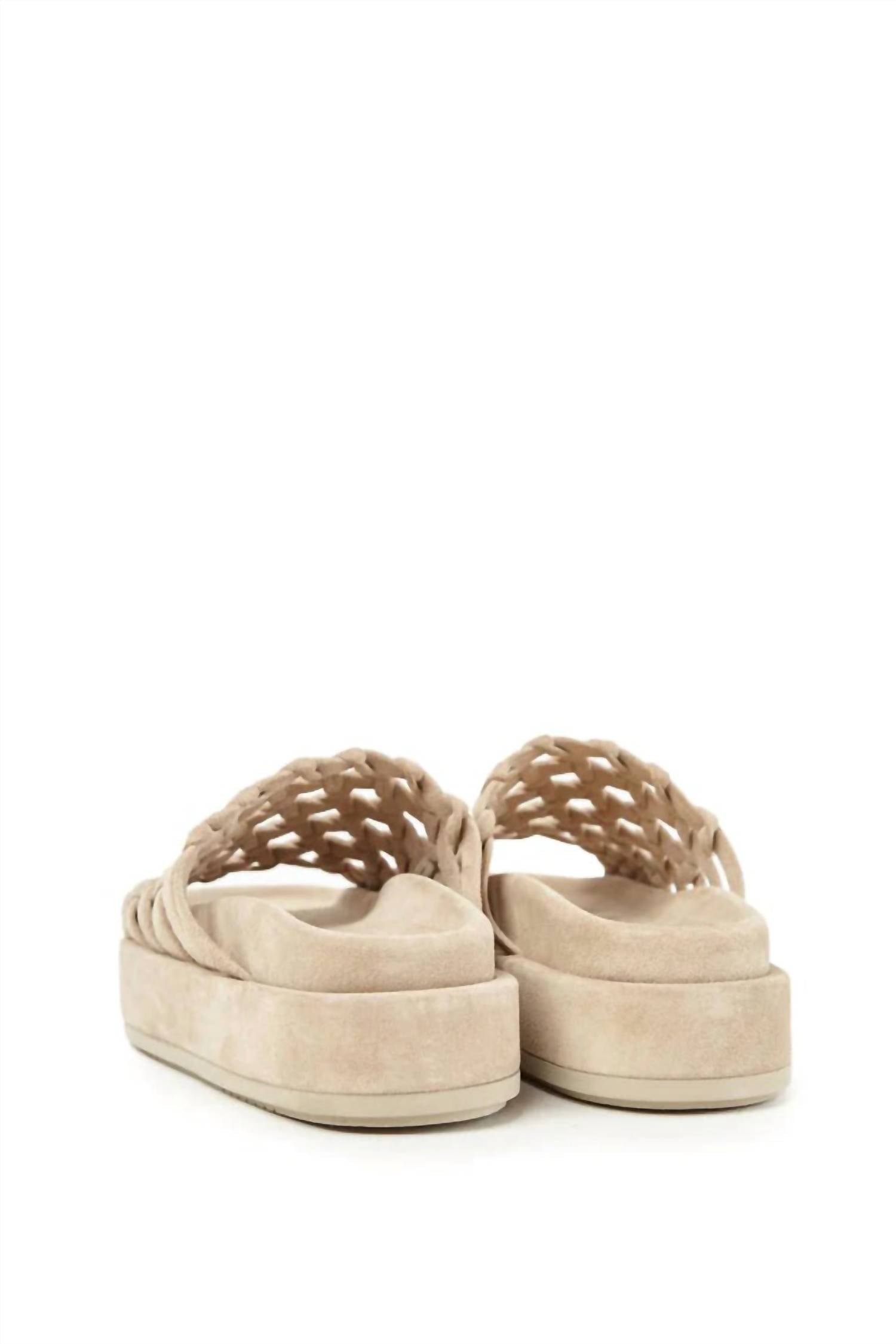 Flowy dresses, cropped pants, and even jumpsuits... this sandal works with them all! Step into style with the Women's Nadira Suede Flatform Slide by PALOMA BARCELO, a perfect blend of comfort and elegance for your casual outings. These minimalist sandals feature a peep toe design and a woven style with a molded footbed for all-day wear. Crafted from 100% leather and made in Spain, they embody luxurious craftsmanship. Opt for these flat heels in corda suede for a chic vacation or a thoughtful Mother's Day gift.