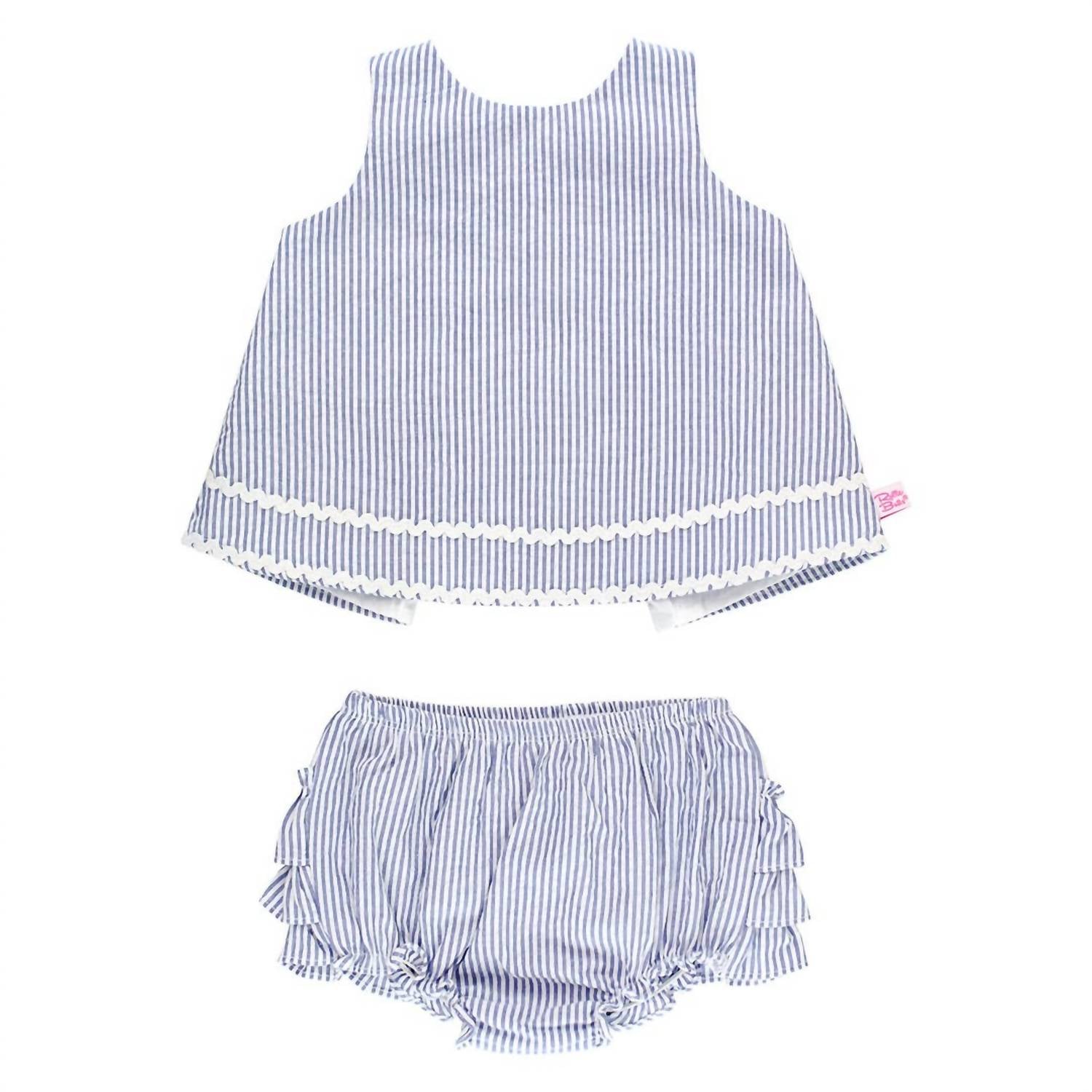 Rufflebutts - Baby Girl Seersucker Ric Rac Swing Top & Bloomer Set