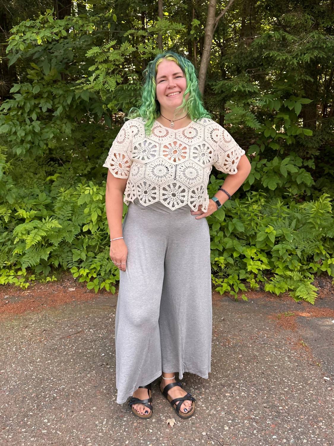 A versatile blouse that works from desk to dinner! Elevate your boho summertime look with the Women's Kaitlyn Crochet Short Sleeve Top by ADORA. Crafted from 100% cotton, this beige blouse offers a textured pattern and a scoop neck, perfect for those casual vacations. With its wider fit and pull-on closure, it’s designed for both style and comfort. Care: Machine wash to ensure it retains its unique style season after season.