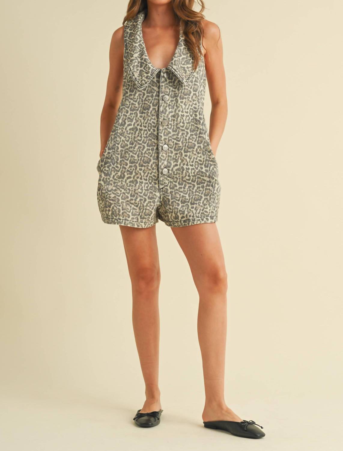 Throw it on and go! Meet the Collared Denim Romper by Klesis, an embodiment of chic maximalist style with its stylish leopard print pattern. This women's romper boasts a button-down closure and practical side pockets, while its 100% cotton composition ensures comfort and a true-to-size fit. Made for vacation-ready ease, it's designed for fall adventures. Care for this piece is a breeze with machine wash and tumble dry instructions.