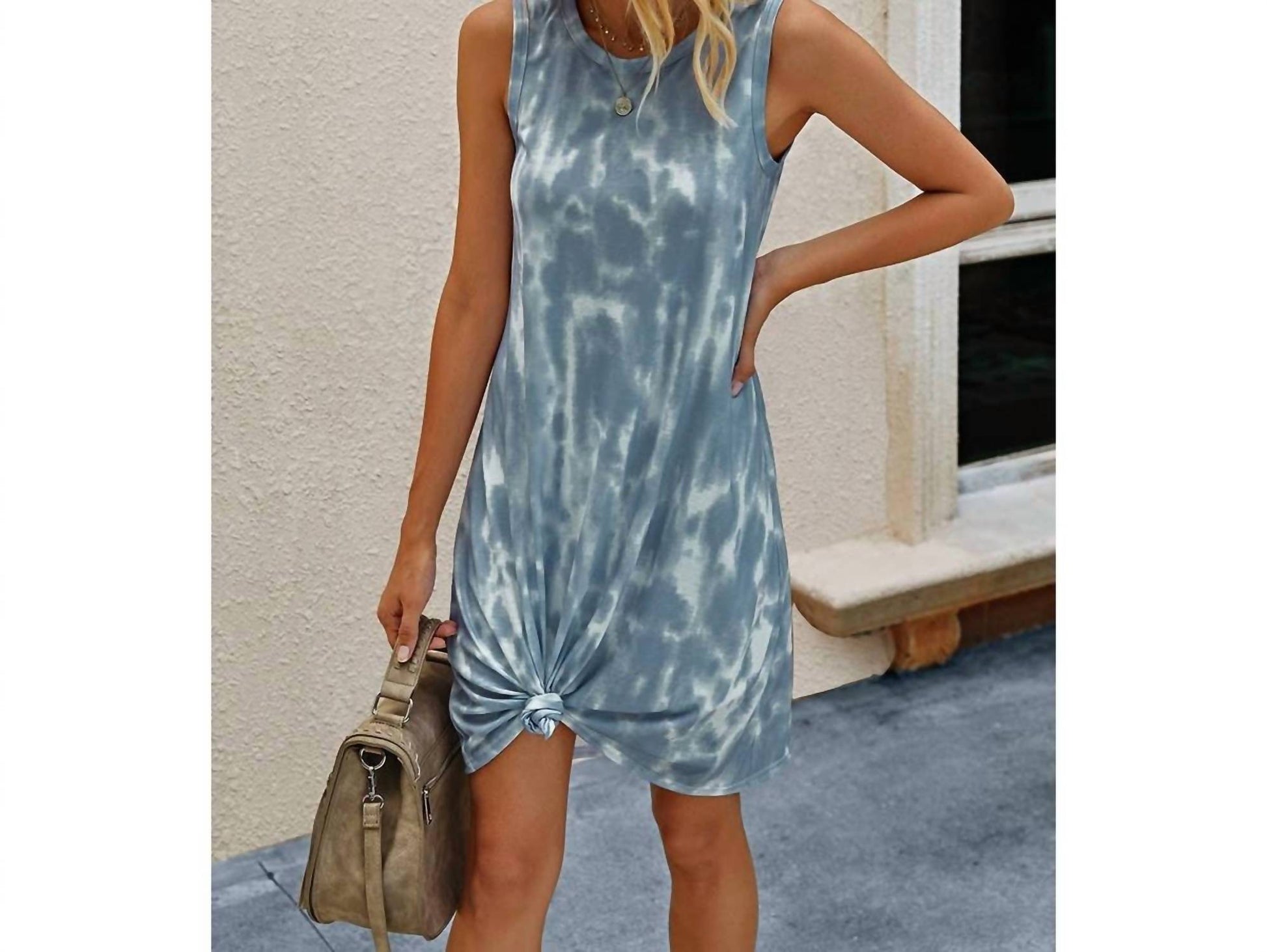 Pair with your favorite sandals for an effortlessly chic look. Elevate your summer wardrobe with the ELINGS Round Neck Tie Dye Short Dress, a chic casual piece in a navy tie-dye pattern. This sleeveless shift dress features a comfortable scoop neck and offers a stylish yet relaxed look, perfect for vacation occasions. With a convenient pull-on closure, it ensures an effortless outfit choice. Care for this garment by machine washing and tumble drying it for easy maintenance.