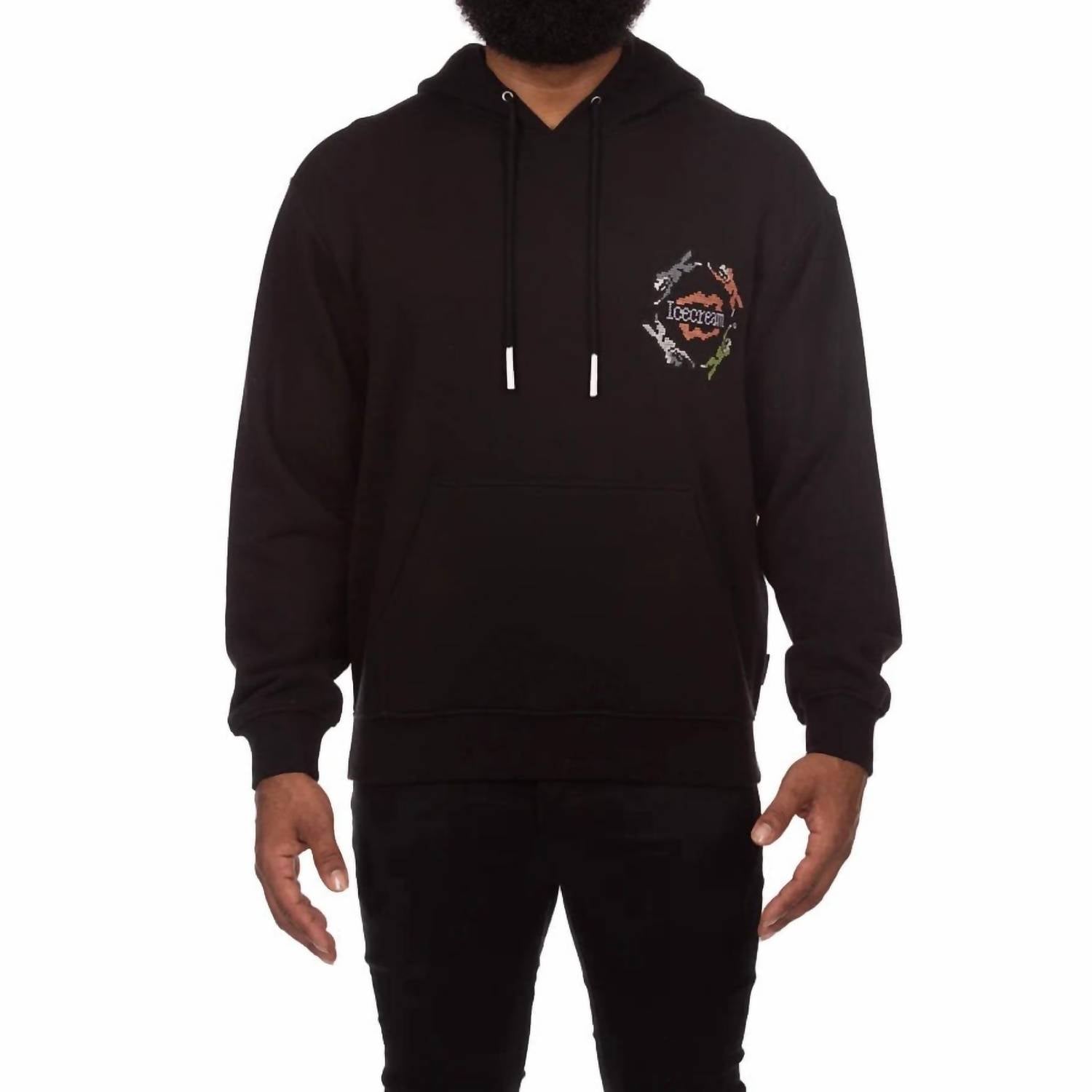 Meet the IceCream Dippin Dots Hoodie in the striking color of Quarry, perfect for making a bold statement. This long sleeve hoodie, made from 100% high-quality cotton, features the iconic embroidered Running Dogs graphic on both the front and back. It also offers functional design elements, such as a drawstring hood and a standard front pocket for added convenience. Closure: Pull on. Care: Hand wash cold separately inside out, line dry, and avoid ironing directly on the design.