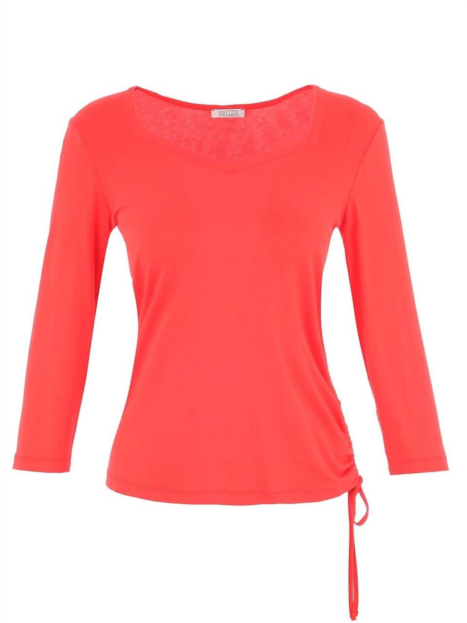 Wear this v-neck sweater with your favorite denim for the perfect fall look. Experience effortless style this season with the Women's Ruched Side Tie Top by DOLCEZZA. This long sleeve, pullover top offers a soft V-neckline and unique side ruching with ties, allowing you to adjust the hem length. The lightweight fabric is a versatile 96% viscose and 4% elastane, hitting around the hipline for a comfortable fit. Carefully crafted in Turkey, it is designed for easy care with a machine wash on a delicate cycle, inside out. Perfect for traveling or special occasions like Mother's Day, this top is available in beautiful colors, including classic black.