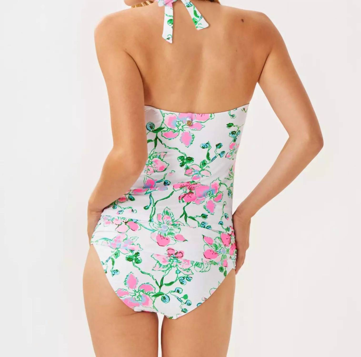 Dream of your next beach getaway in this cute little number. Pair with strappy sandals, a floppy hat, and an oversized tote to complete the perfect vacation look. The Lagoon Sarong Hipster Bikini Bottom by Lilly Pulitzer is an essential addition to your warm-weather wardrobe, designed in the vibrant Multi Orchids On The Avenue Swim print. This women's swim bottom offers full coverage with a stylish twist detail and features a shirred band with a sarong for a flattering fit. Crafted from durable nylon spandex, it is perfect for beach days and summer getaways. Care instructions include hand washing in cold water and line drying away from direct sunlight.