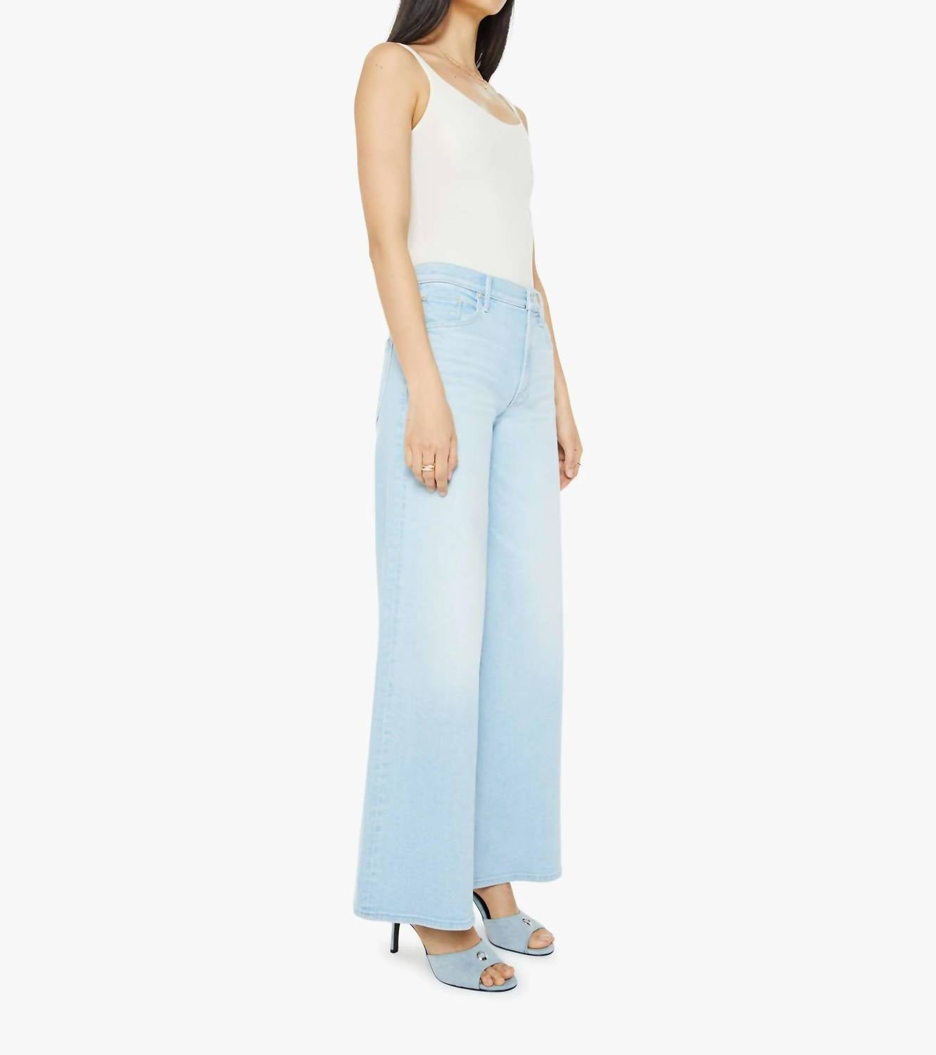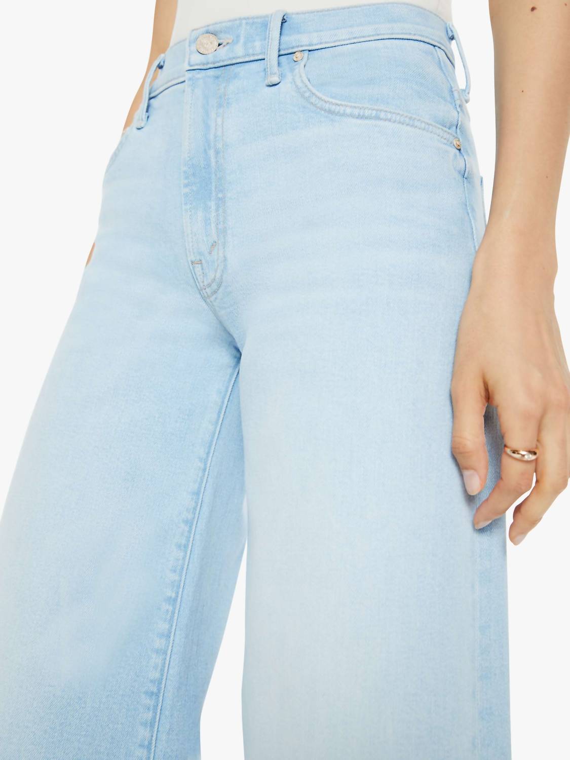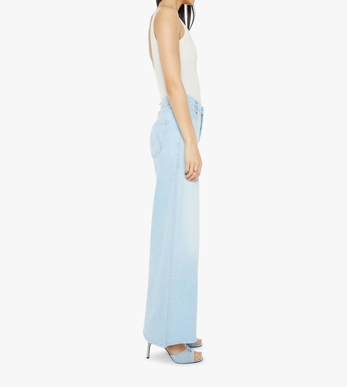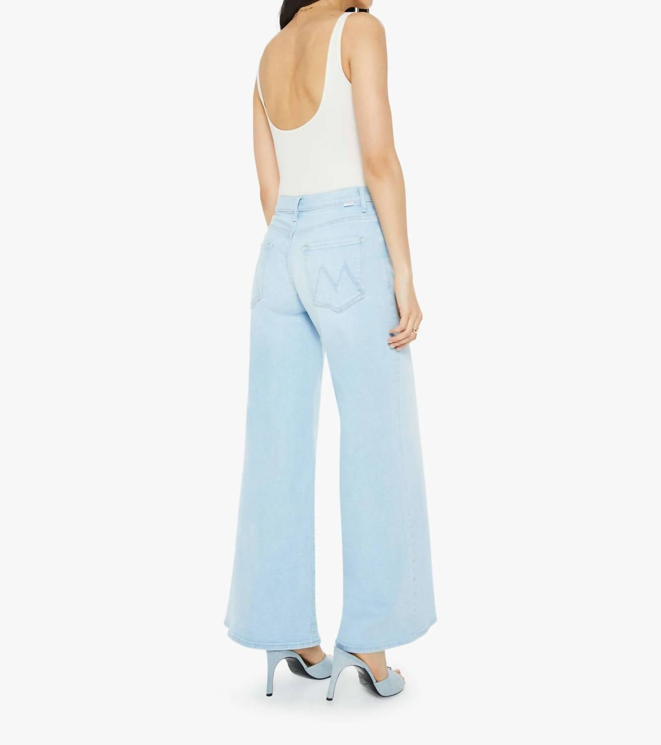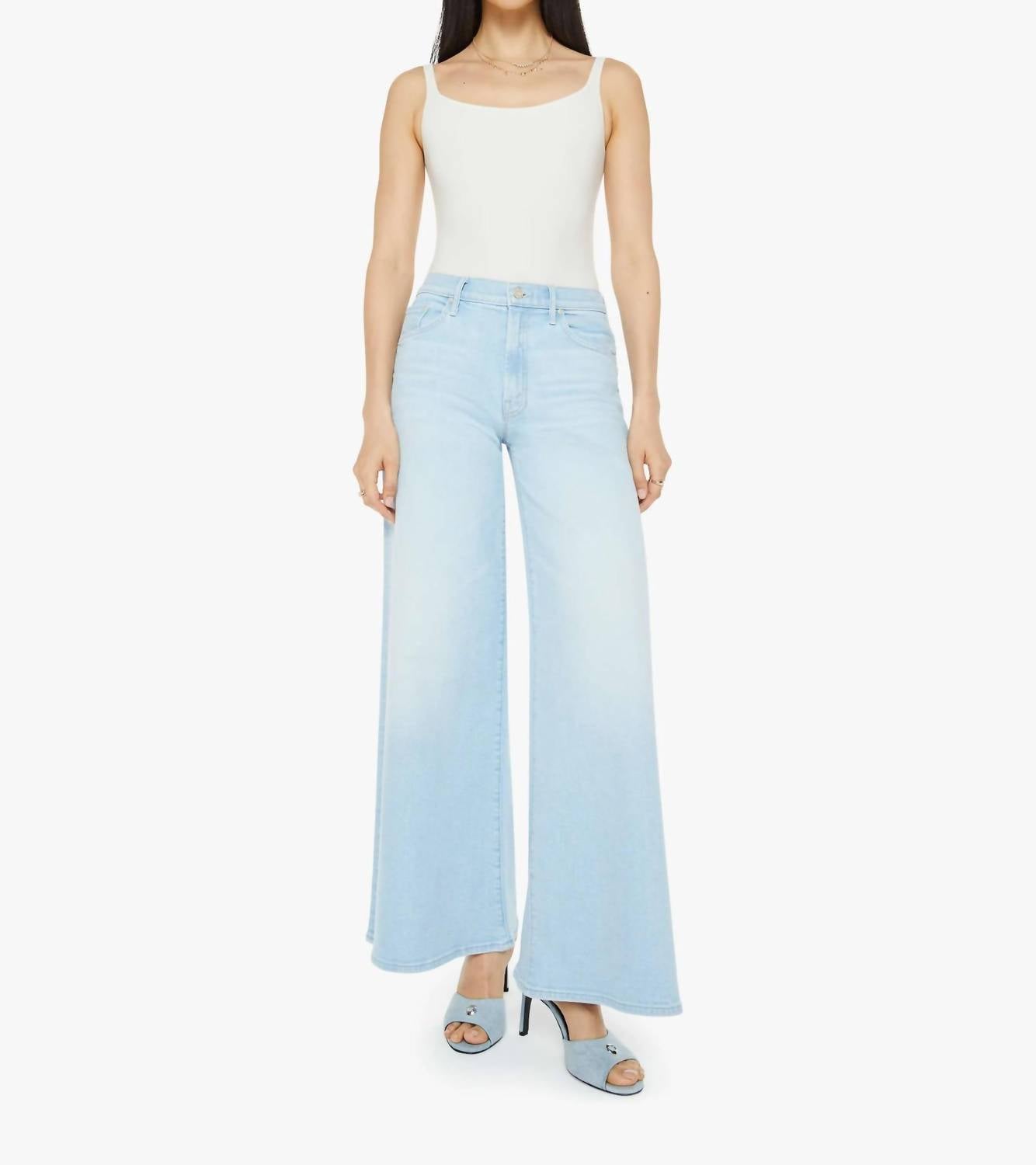 Just as cute as they are comfortable. Introducing The Swisher Sneak by Mother, a statement piece in Yep a a light blue wash designed for undeniable comfort and style. These super wide-leg jeans boast a high-rise waist with a relaxed fit, featuring a 32-inch inseam. Crafted from a cotton blend, they offer stretch and durability, with subtle whiskering and fading at the knee for a lived-in look. Made in Los Angeles with a button closure, these jeans perfectly capture the essence of laid-back sophistication.