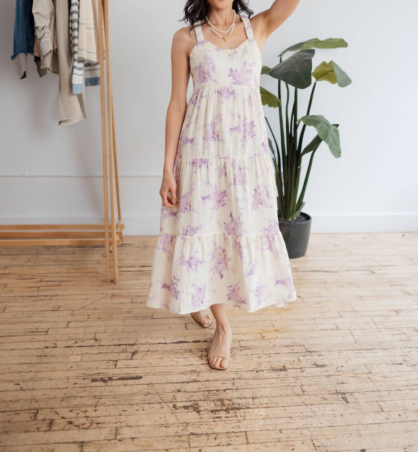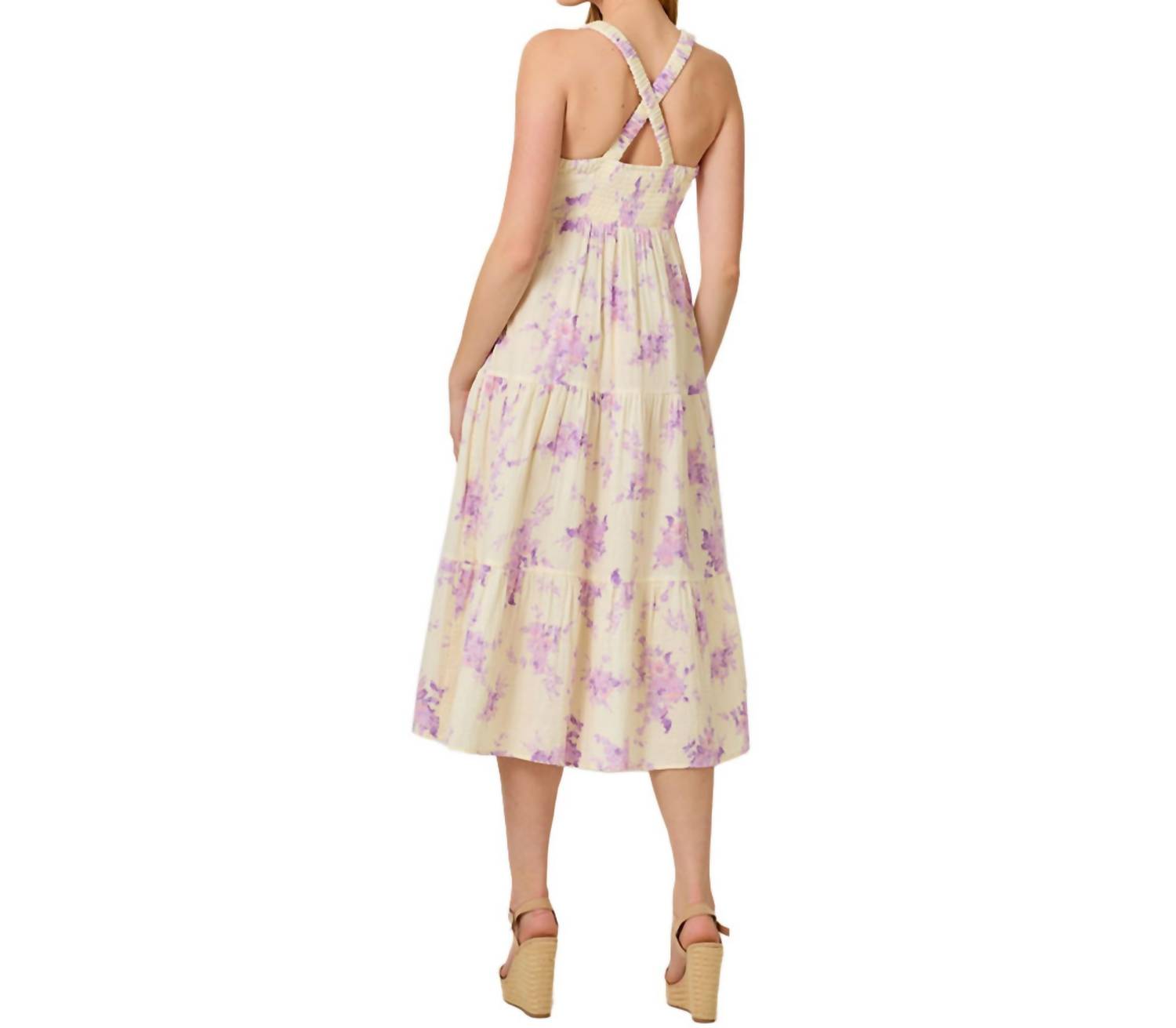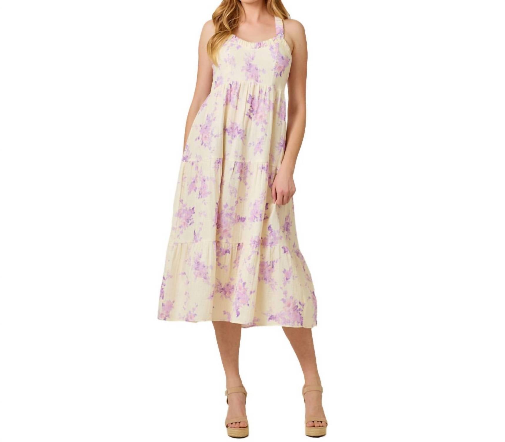 A midi dress so versatile, your options for wearing it are endless. Discover the Floral Tiered Midi Dress by Mystree, a perfect summer staple in an elegant Ivory Mix floral pattern. This sleeveless A-line dress features a sweetheart neckline and a striking cross-back detail, with a smocked back for added comfort. Composed of a 100% cotton shell and 100% rayon lining, it's designed for a comfortable pull-on style. Care instructions include hand washing. Ideal for vacation wear, this dress effortlessly combines minimalist trends with a timeless appeal.