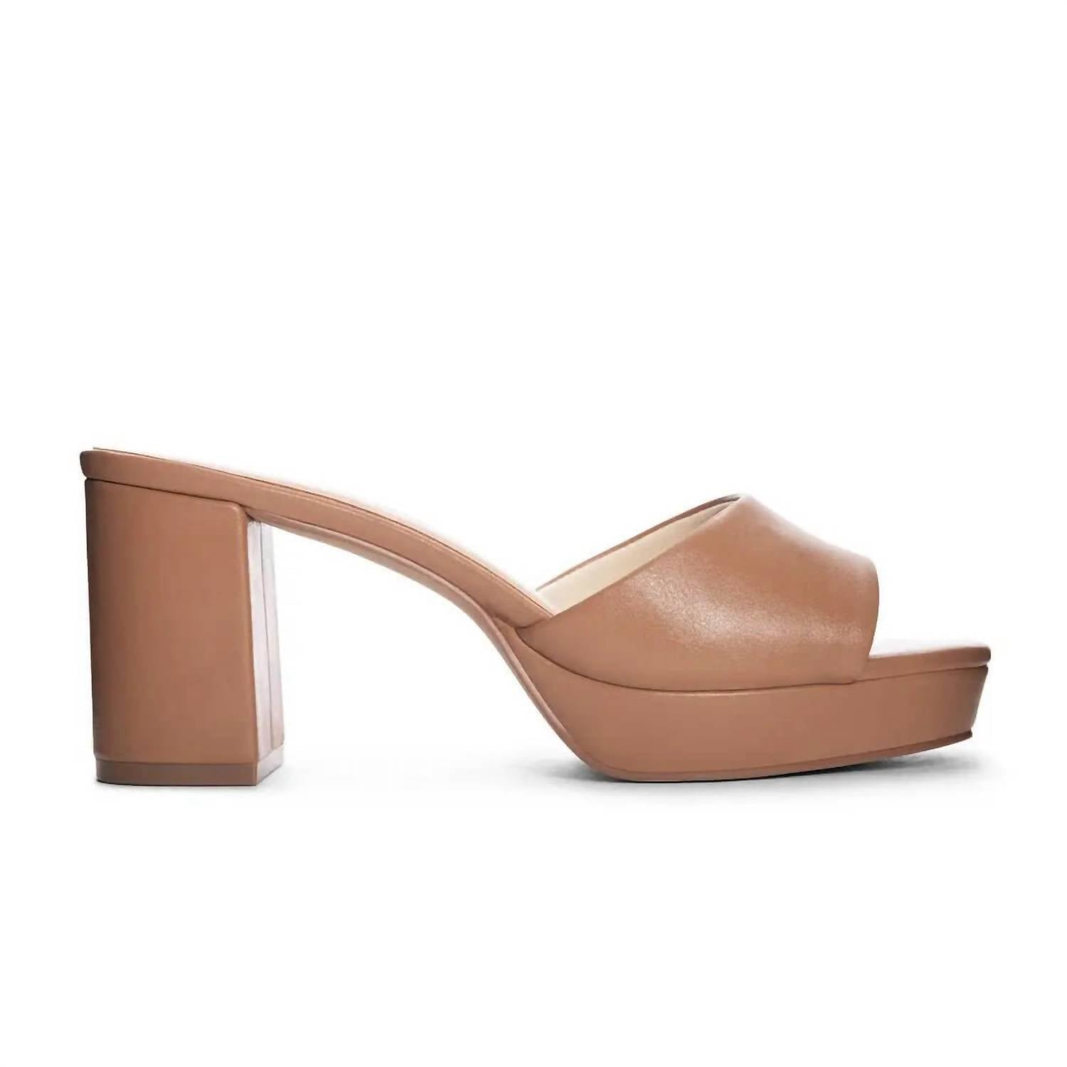 The perfect variation on one of our favorite trends this season. Step into summer with the Tai Sandal by Chinese Laundry, the perfect chunky heeled slide for any outfit. Featuring a 3.25" heel and 1" platform, its open-toe design ensures comfort and style in warm weather. Made with durable polyurethane, this sandal in tan is just what your wardrobe needs.