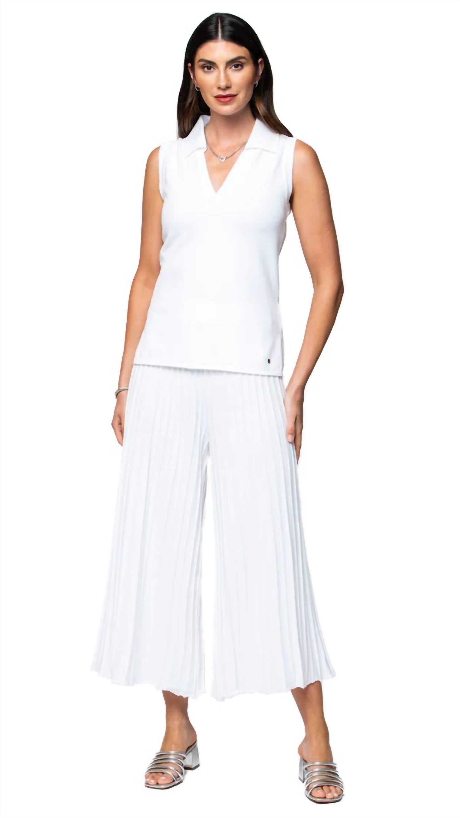 You'll be reaching for this comfy and classic v-neck sweater all season long. Introducing the Stella Piquet-knit Sleeveless Polo Top by BIANA, a chic addition to your wardrobe in a timeless white color. Crafted from the finest Italian yarn, this top is composed of a luxurious 70% viscose and 30% poly stretch blend. The pull-on closure and solid pattern make it an easy choice for effortless style, while the V-neckline adds a touch of elegance. Care for this piece with dry cleaning or hand wash in cold water, then hang to dry.