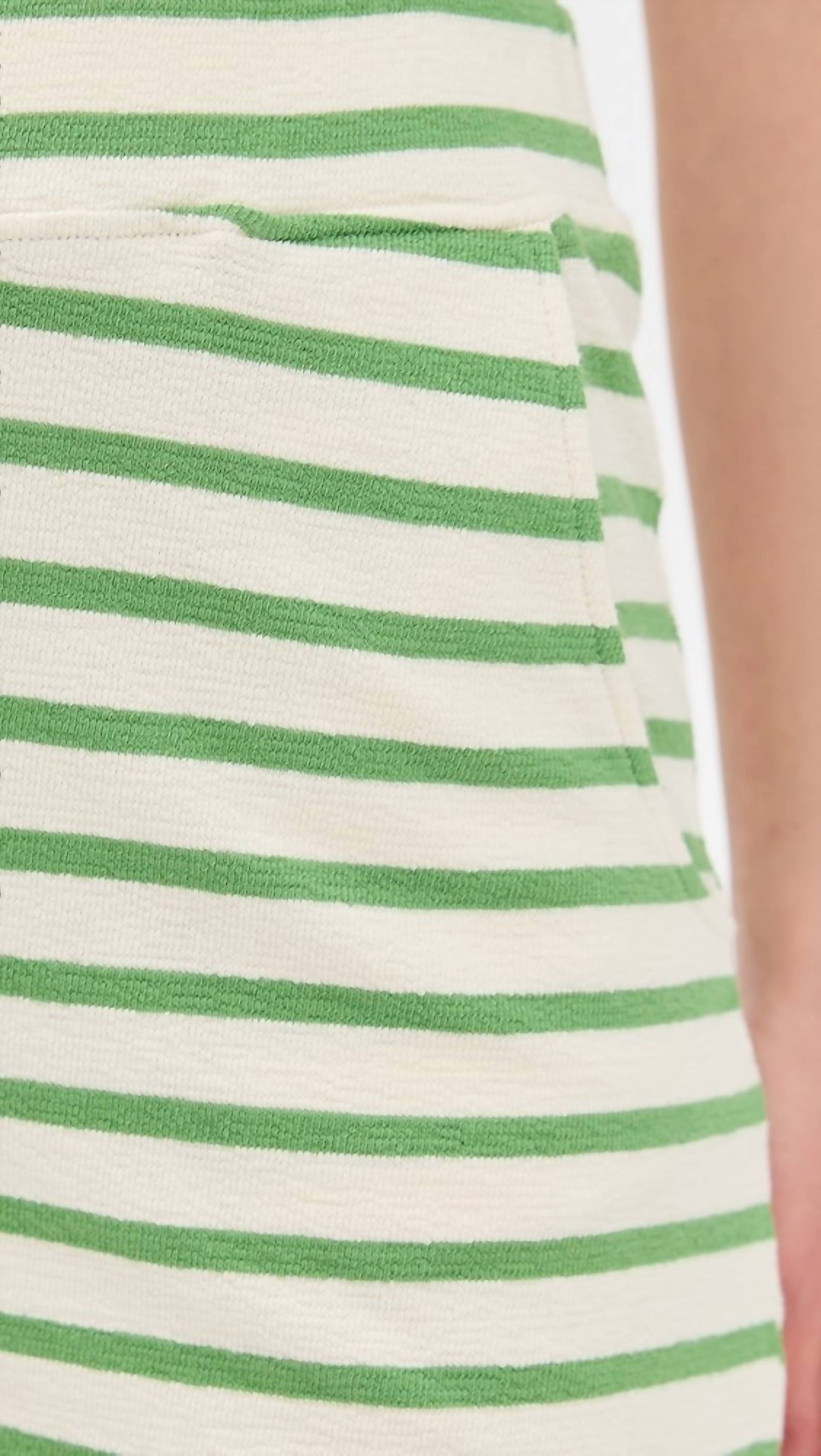 Tuck your favorite tee into these high-waist shorts for a more casual-cool feel. Experience the perfect blend of comfort and style with KULE's Eco Cotton Venus Short in a chic Cream/Avocado stripe. Crafted from 100% cotton, these high-waist shorts boast an inseam of 2.25 inches, making them an ideal choice for summer vacations. Designed with convenient pockets and a pull-on closure, they offer practicality and ease of wear. Originating from Portugal, they are machine washable, ensuring effortless care for your wardrobe's newest addition.