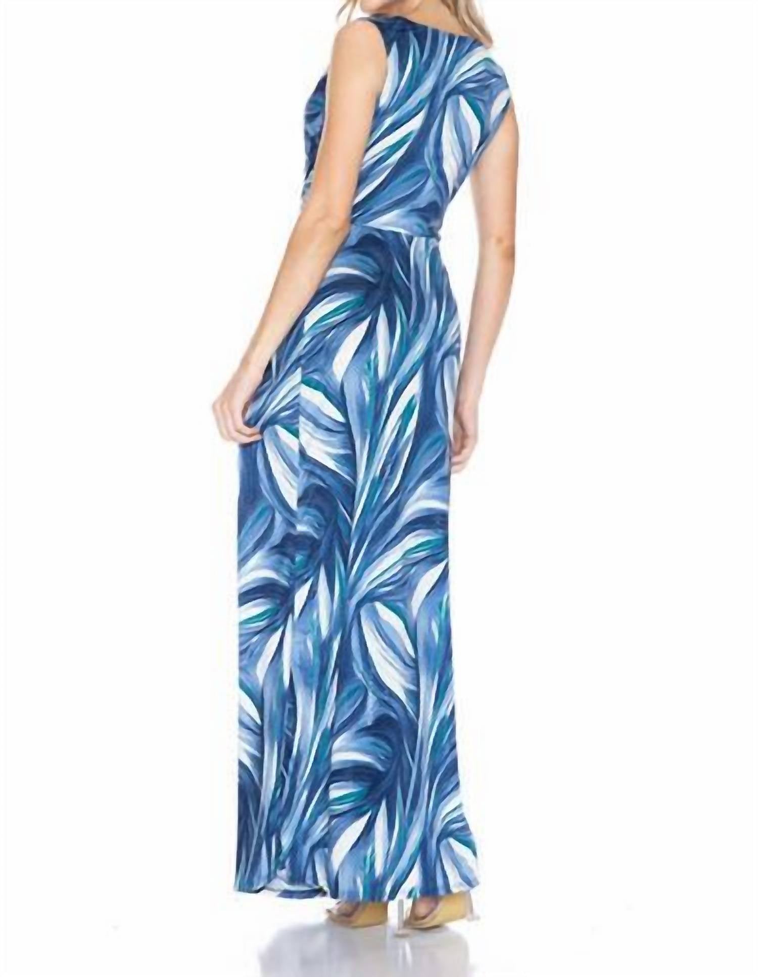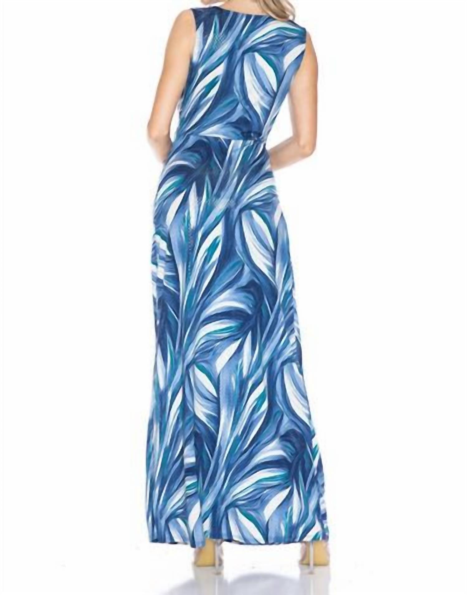 A maxi dress that is just as cute as it is comfortable. Elevate your dinner party style with the Twist Front Maxi Dress by Ariella, designed for a graceful and sparkling entrance. This sleeveless, V-neck dress is crafted from 94% polyester and 6% spandex, ensuring a comfortable and stretchy fit through its elegant maxi length. Its standout features include a twist front under the bust and a right-side slit that drapes beautifully, enhanced by the subtle sparkle detail on the blue fabric. Closure is simplified with a pull-on design, making it an effortless choice for your next event.