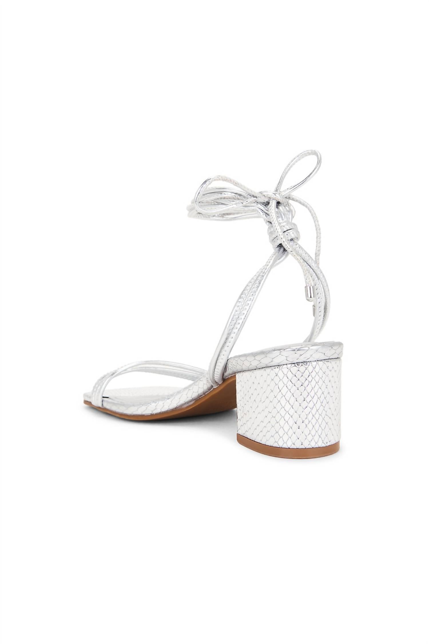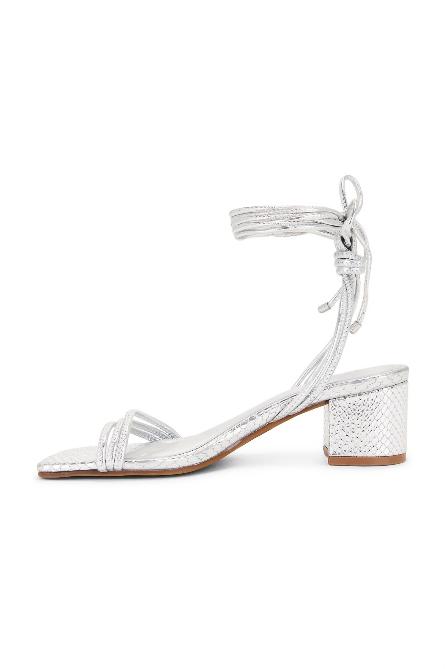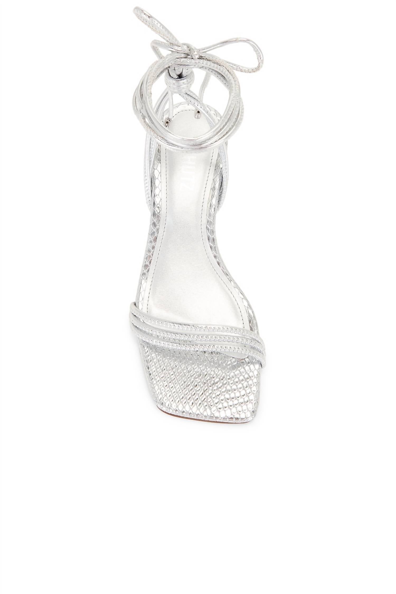 Classicly cute and all-day-wearable. We love this sandal. Introducing the SCHUTZ Thea Block Sandal, a statement piece crafted with a snake-embossed nappa leather upper in a striking Prata hue. Made in Brazil, this sandal features an ankle strap closure and a comfortable cowhide lining. The stylish design includes an angled square peep toe and a sturdy block heel measuring approximately 60mm or 2.3 inches. Perfect for adding elegance to any outfit, this women's sandal combines luxury with practicality.