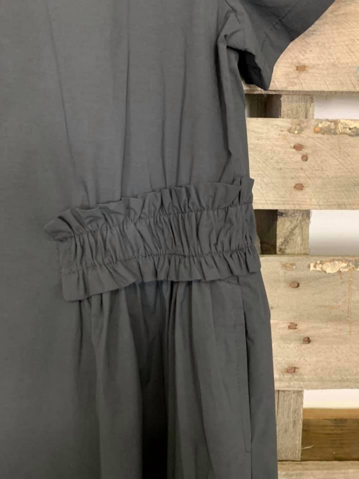 The perfect length dress does exist. Discover the elegance of the Short Sleeve Solid Midi Dress by Amma, designed by Kedem Sasson. This black dress, crafted from 100% cotton, features a timeless shirt silhouette with a crewneck and short sleeves for a classic look. Made in Israel and detailed with a convenient pull-on closure, it ensures both style and comfort. To maintain its quality, hand wash inside out with cold water and hang to dry.