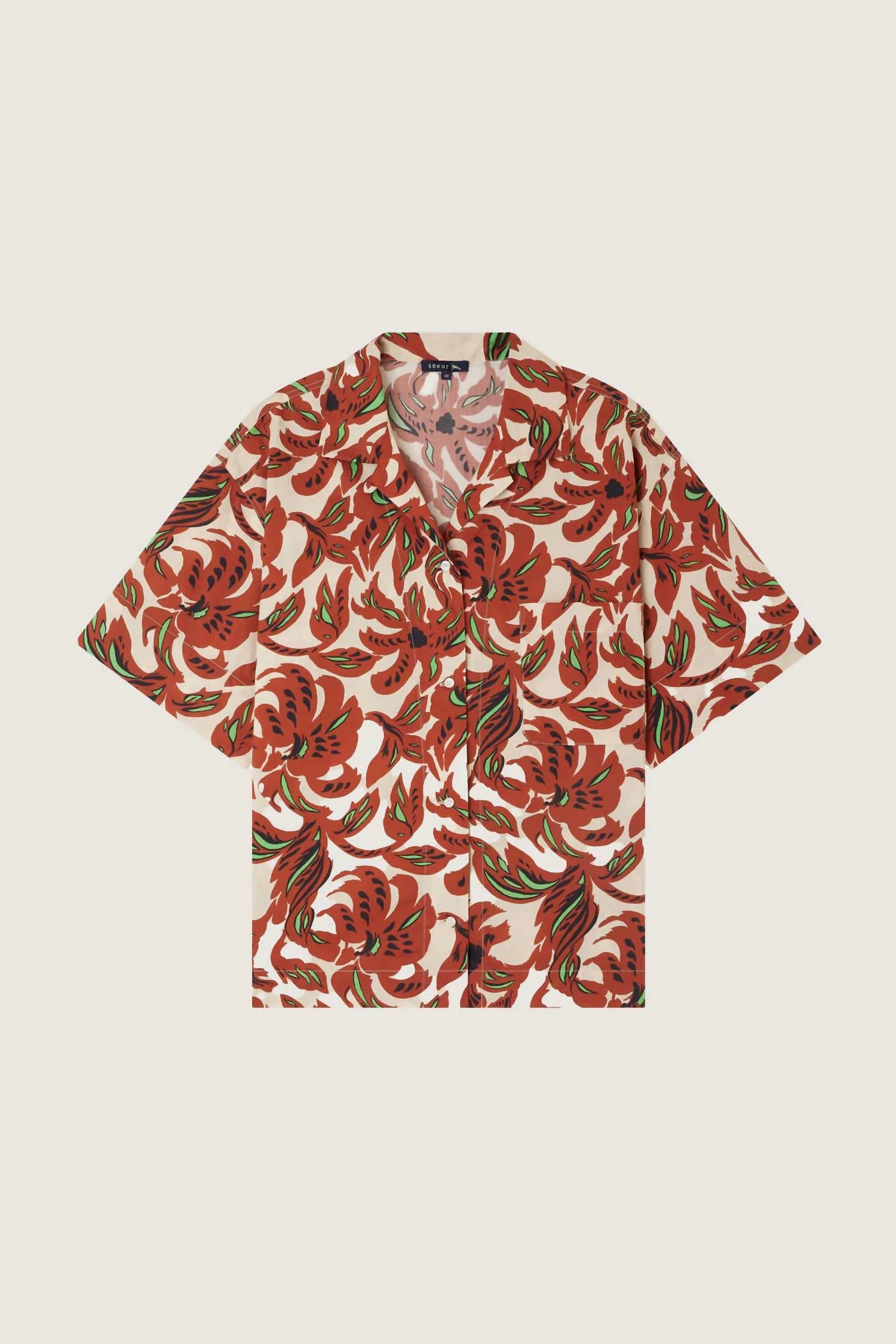 A timeless blouse that will never go out of style. Introducing the Soeur Alexandre Short-sleeved Blouse, a chic addition to any wardrobe with its vibrant floral pattern in clay and green. Crafted from 100% cotton, this blouse boasts a lightweight poplin texture for ultimate comfort. Features include a classic collar, convenient button closure, and side slits, complemented by a handy pocket. Care is straightforward with machine wash instructions, making it an ideal choice for spring occasions and vacation getaways.
