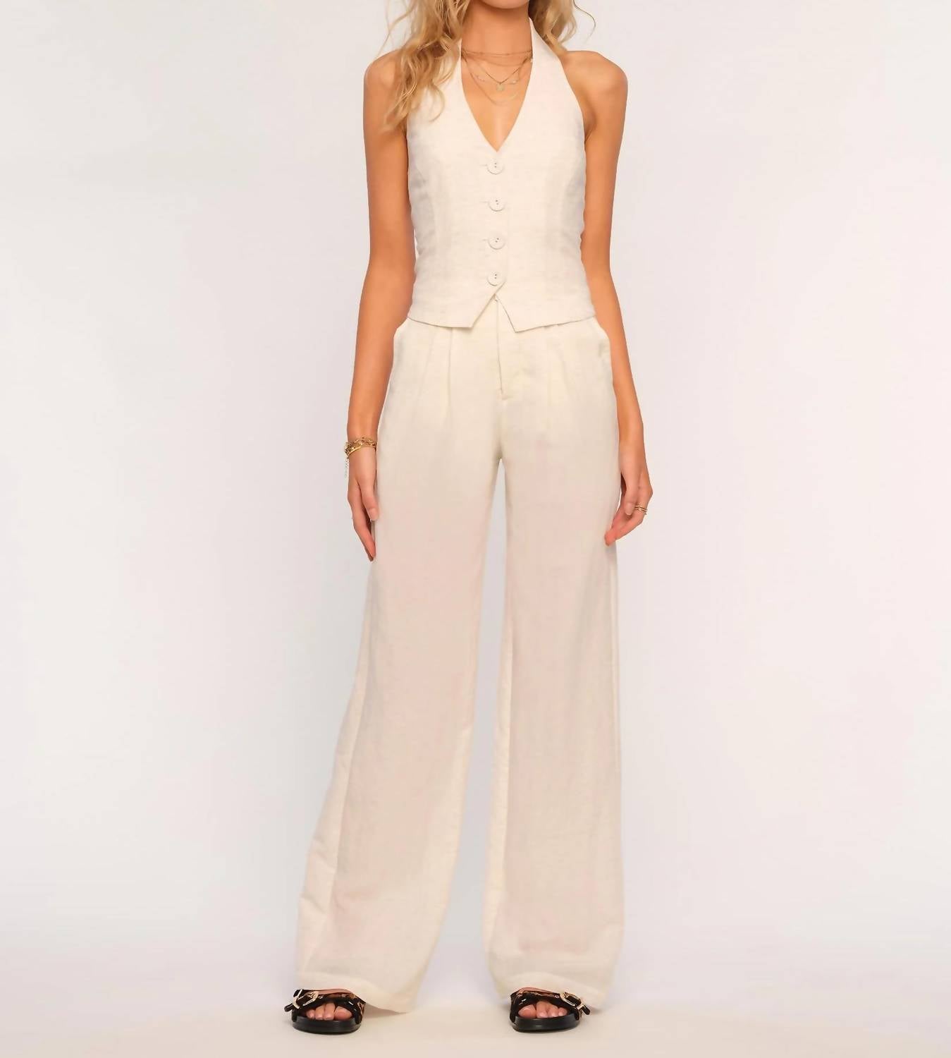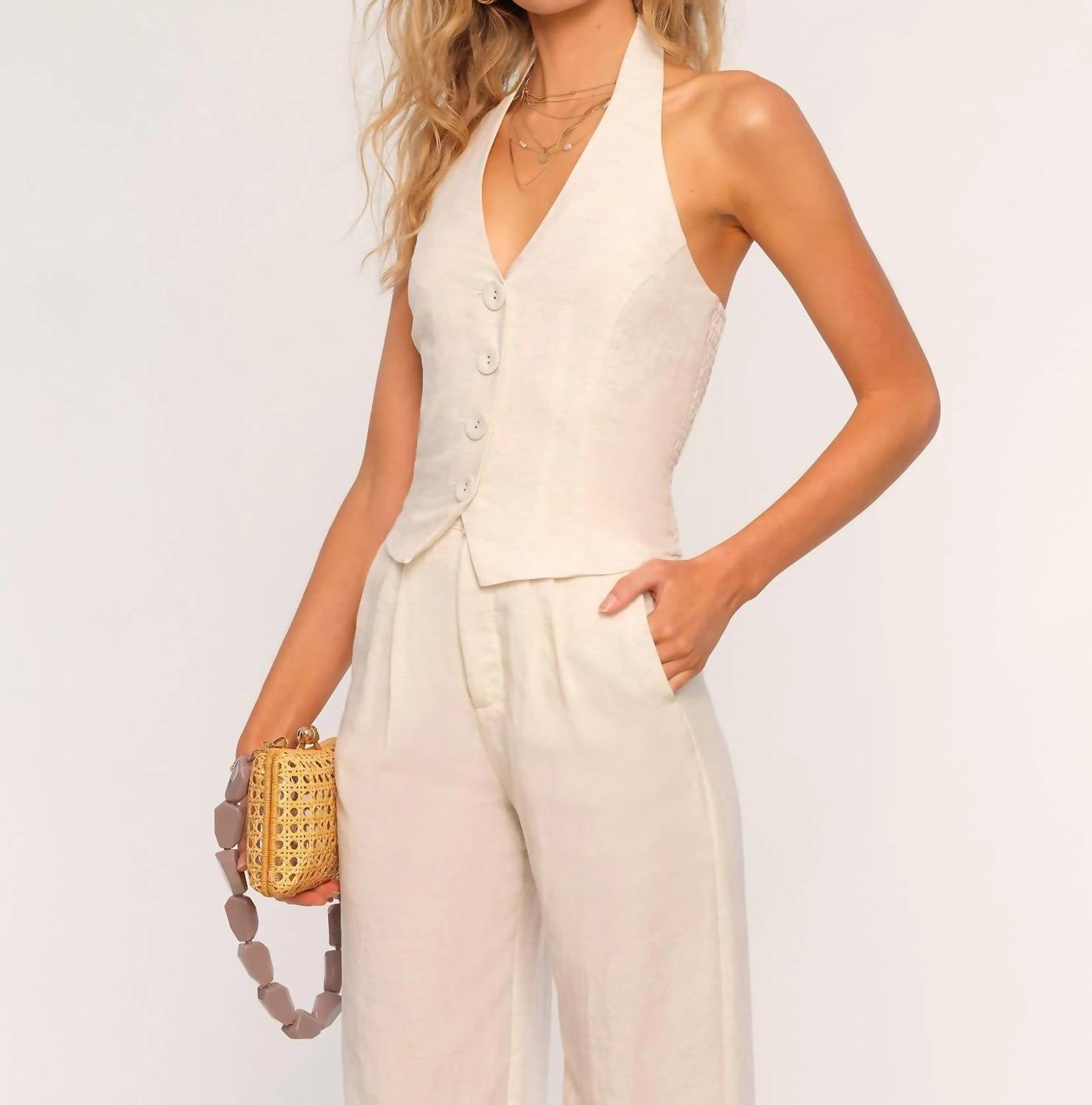 That extra layering piece you didn't know you needed! Introducing the Lyanna Vest by Heartloom, the epitome of minimalist style in an elegant ivory hue. This sleeveless vest is crafted from a luxurious blend of 45% Lyocell, 38% Rayon, 9% Linen, and 8% Nylon, ensuring a soft touch and slim fit. With a 21" length from the high point of the shoulder and a button closure, it offers a polished look perfect for vacation. Fully lined for added comfort and structure, this piece seamlessly blends ease with sophistication.