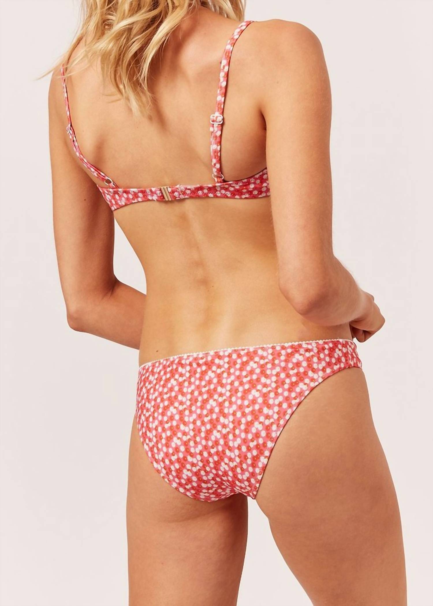 This cute and flattering swimsuit is perfect for making a splash at the pool, lounging on sun-kissed beaches, and staying stylish throughout the upcoming summer season. Ric rak detailed bottom with a bow at the center is a low-rise suit with cheeky coverage.