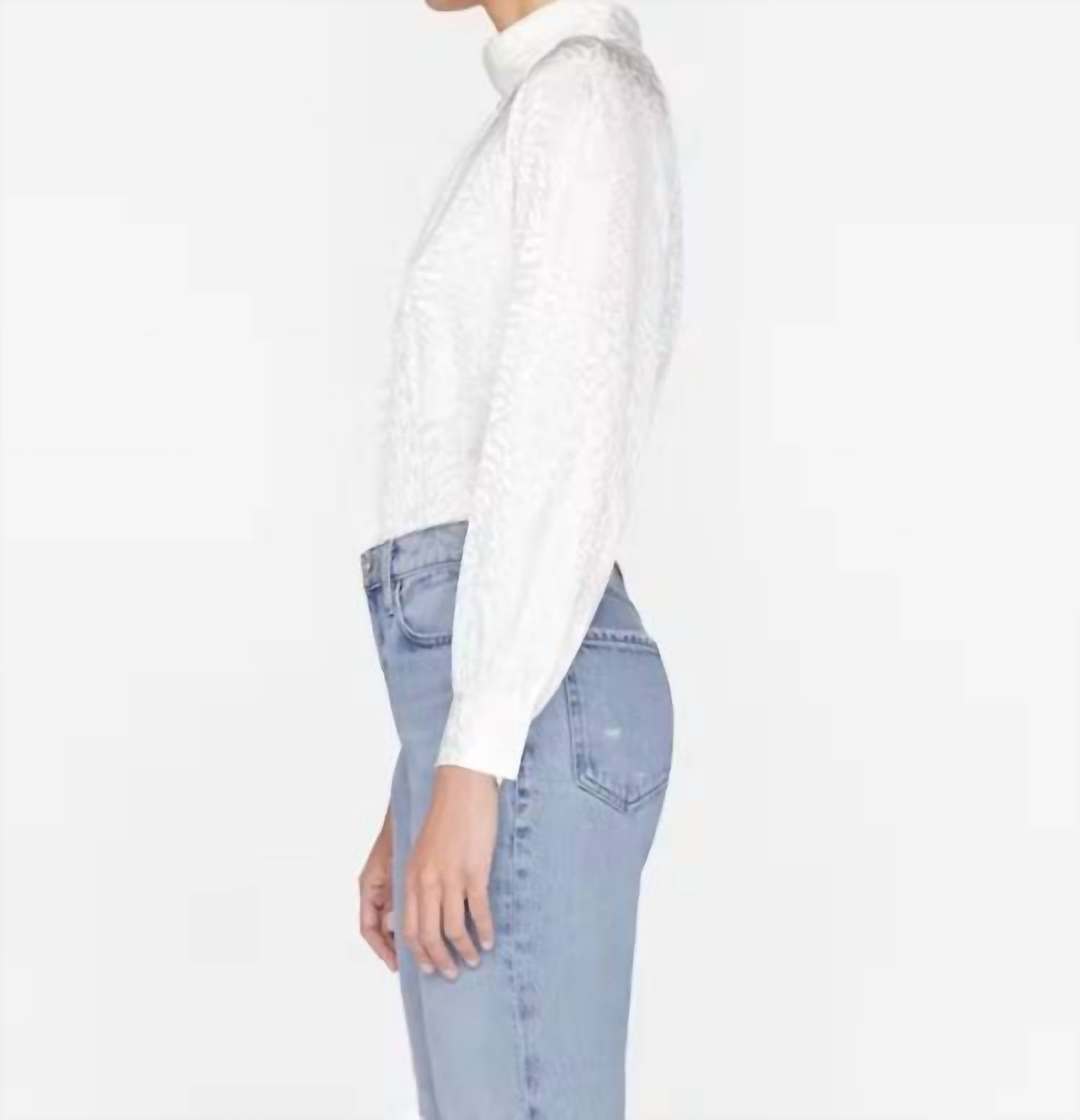 A versatile blouse that works from desk to dinner! Featuring ruching at the shoulders, cuffed sleeves, and an ultra-soft 100% silk material. Foldover mock neck provides. Fits true to size. 22.875" Long From Shoulder. 100% silk. Dry clean only.