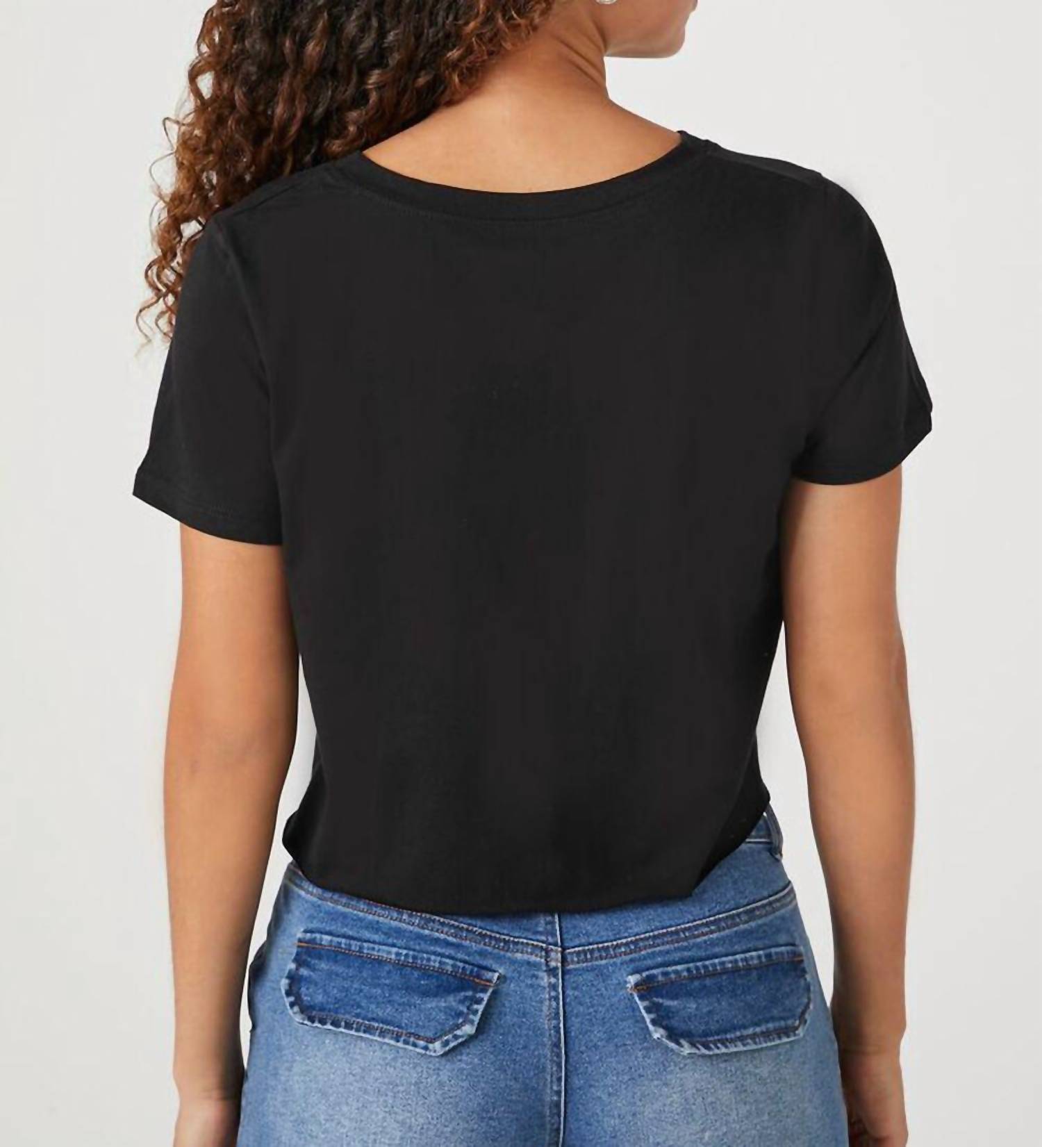 A knit tee by Prince Peter™ featuring front "New York Cty" text, a lipstick kiss graphic, short sleeves, a crew neck, and a raw-cut cropped hem. Fit: Distressed Crop Top. Made from 100% custom cotton, with a perfect hand feel and worn-in look. About 17" from shoulder to hem. Machine wash cold.