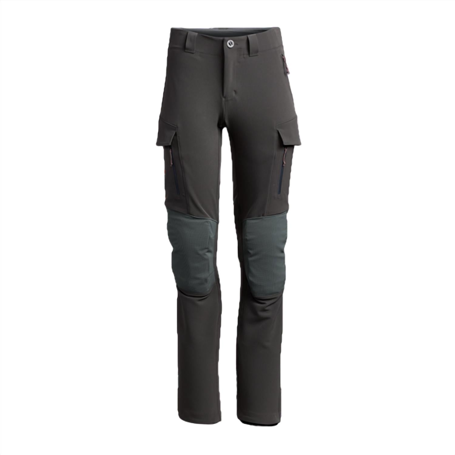 Articulated fit with athletic, tapered legs and low-profile waist. Removable knee pads for added protection. Reinforced seat and knees with waterproof nylon ripstop fabric. Gore optifade concealment subalpine for stalking and ambushing in vegetated terrain. Fabric: polyester stretch woven. Weight: 22.6 oz. / 26 reg.