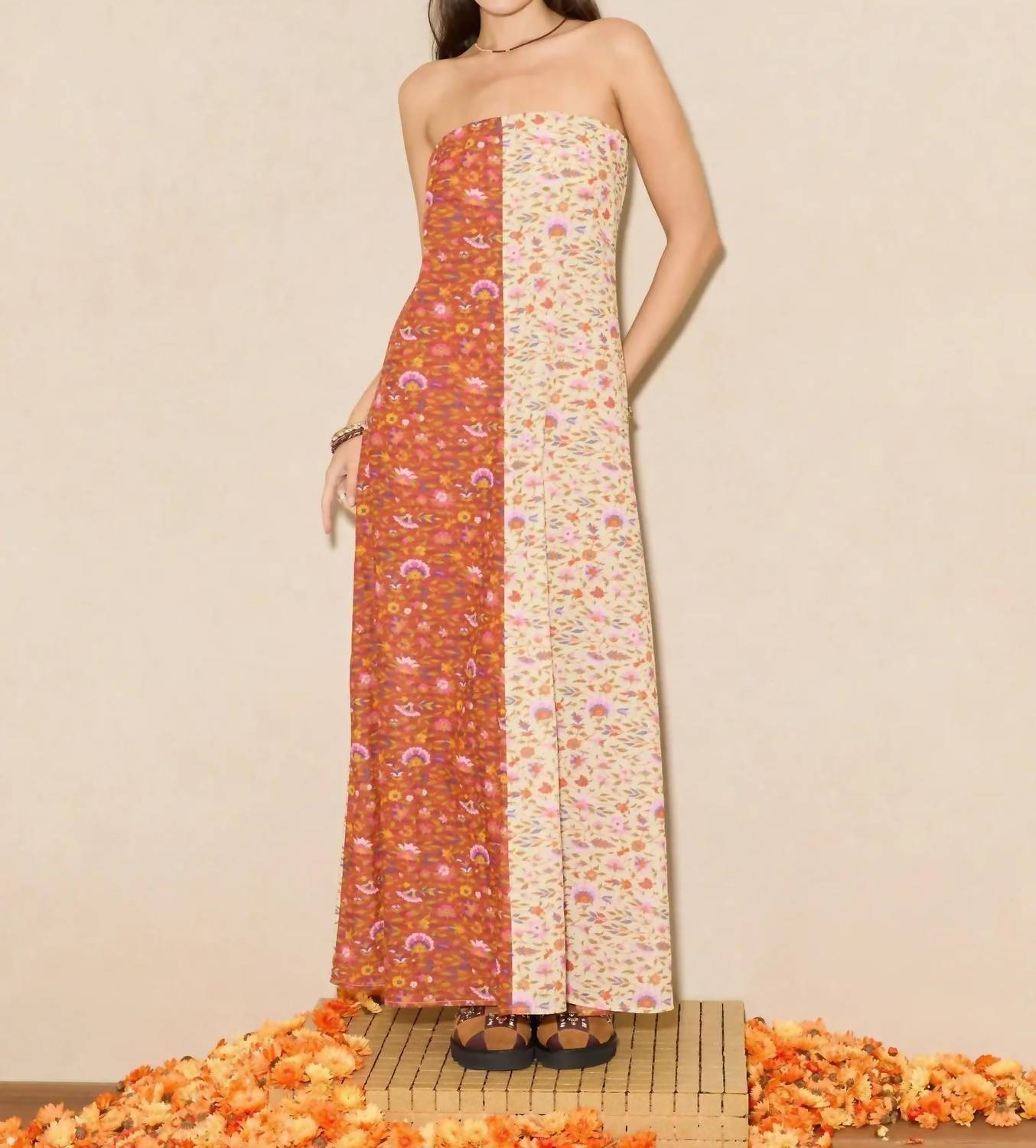 Who doesn't love a good maxi dress? This one you'll be reaching for season after season. Introducing the Soraya Strapless Maxi Dress by BOTEH, a captivating addition for your summer wardrobe in 'Floral In Scorched Shades.' This dress, crafted from a blend of 50% Cotton and 50% Certified Lenzing™ Viscose, promises an elegant drape and breathable comfort, thanks to its bohemian-inspired styling from India. With an invisible zip closure ensuring a seamless look, the dress includes a grip elastic at the top bust and an internal shelf bra with elastic for a secure fit. Perfect for holiday parties, its vibrant pattern and sustainable fabrication highlight a commitment to quality and responsibility.