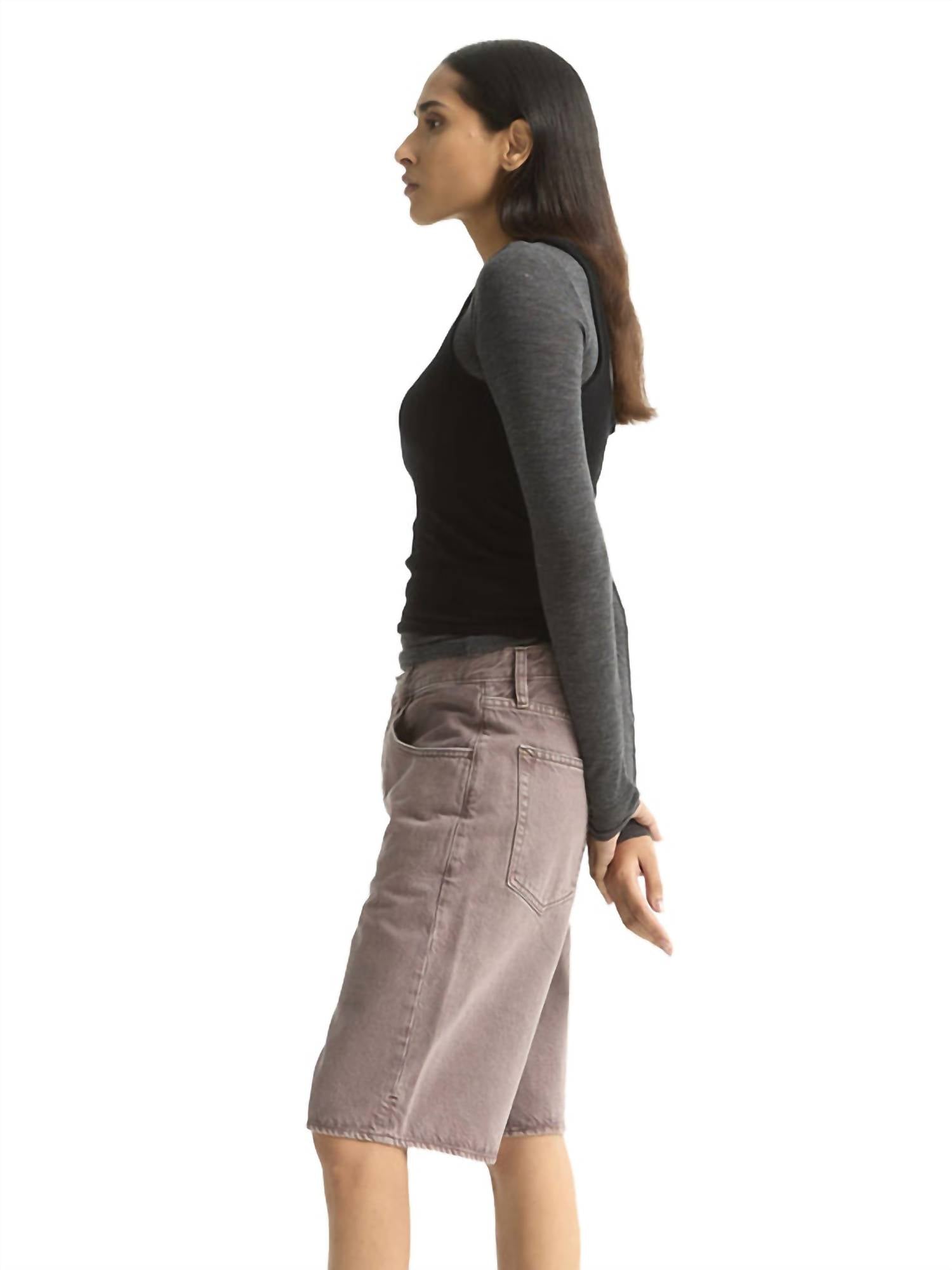 Not only cute but extremely comfortable. The jean shorts you will be reaching for all season long. These longer denim shorts are designed for comfort and ease, featuring a high-rise fit with a zip fly and button closure. Styled with classic five-pocket detailing, they offer a relaxed fit through the hips and a length that falls at or just above the knee. Made from soft, rigid Italian denim in 100% organic cotton, they’re finished in a low-impact brown-grey wash that blends casual versatility with sustainable craftsmanship.