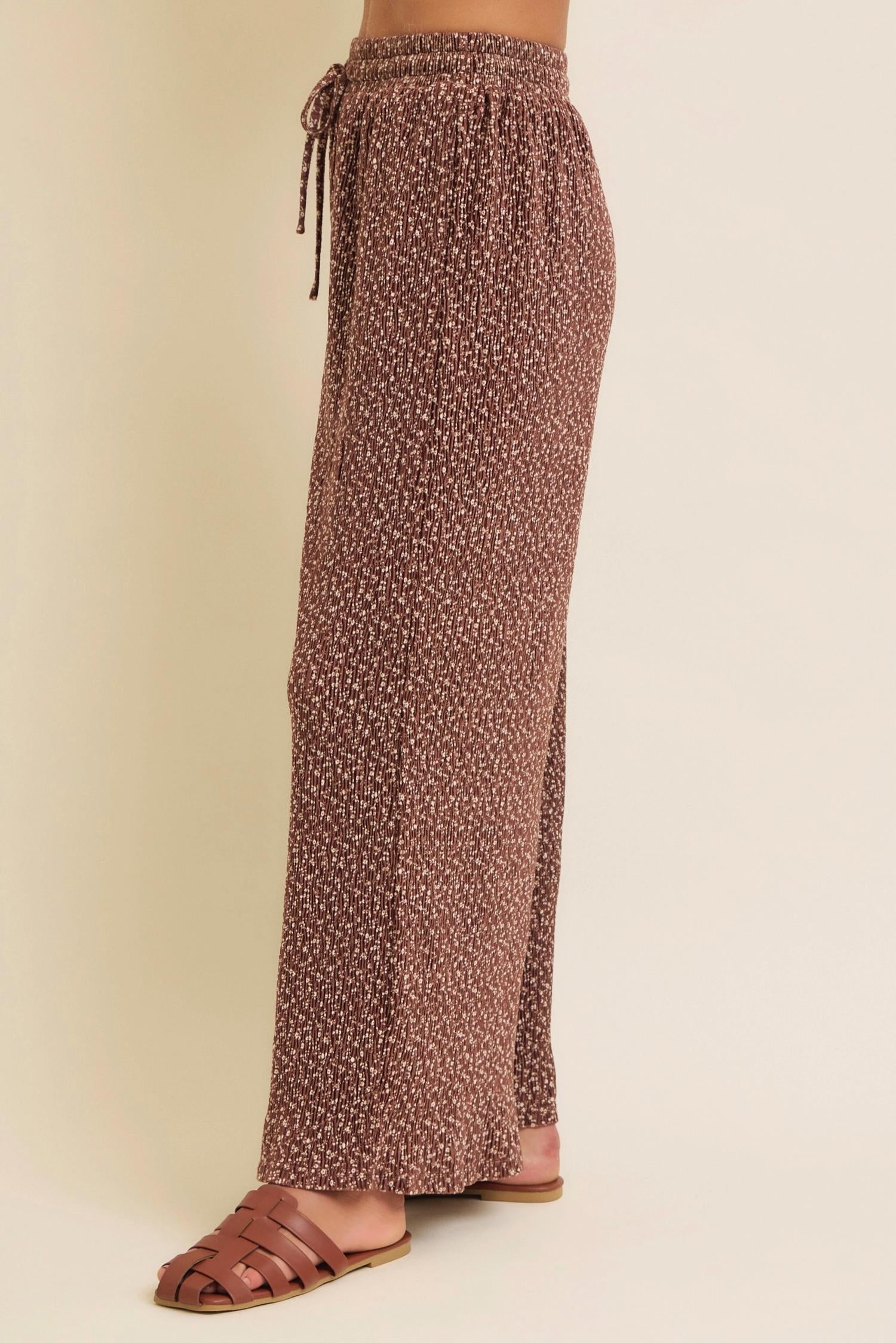 These wide-leg pants offer a luxurious feel in 100% polyester with a playful floral print. Featuring an elastic waistband and drawstrings, they ensure comfort with easy pull-on closure, plus convenient pockets for added practicality. Model is wearing a size small, and these pants fit true to size.