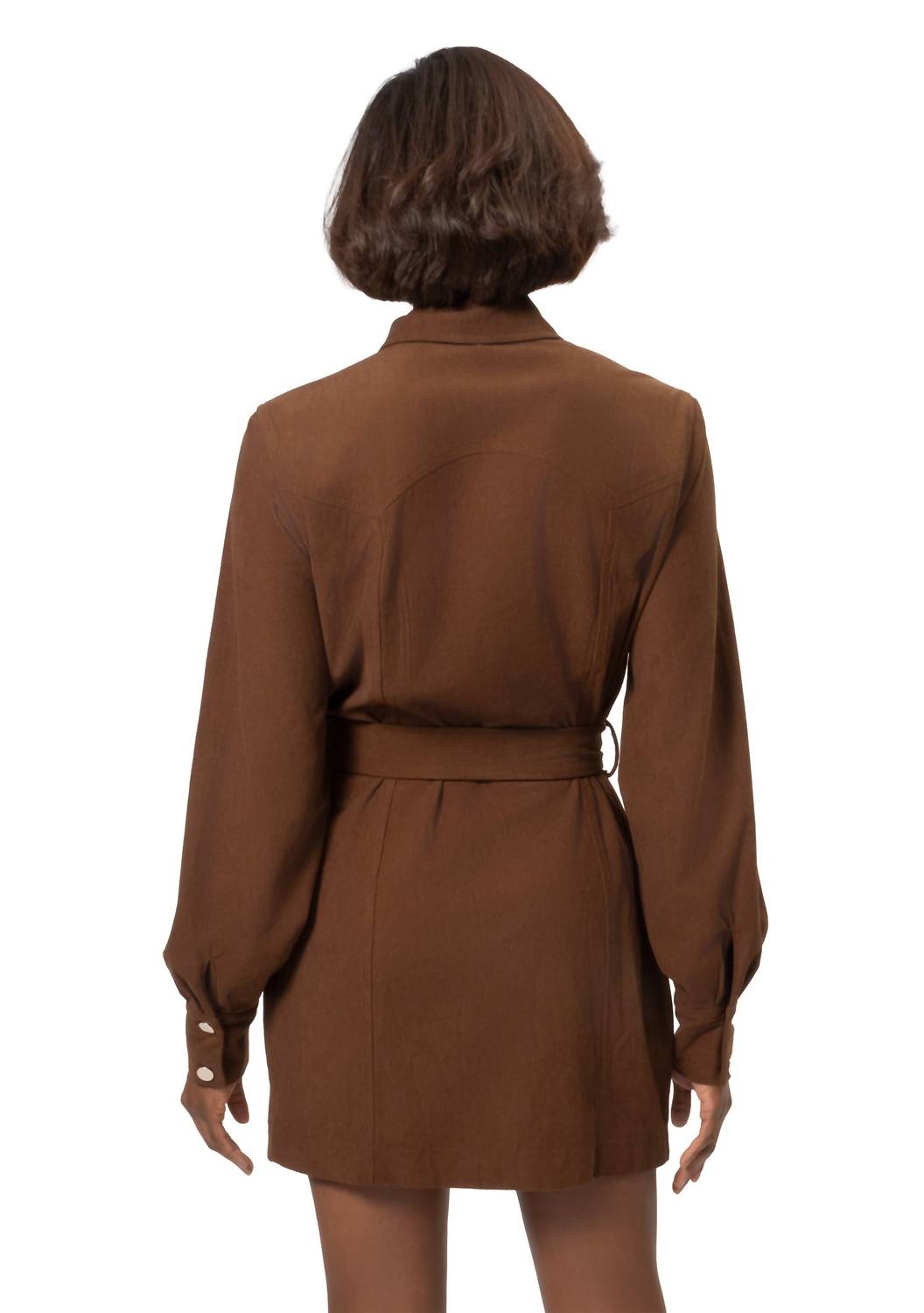 The kind of easy and flattering dress you'll be reaching for all season long. Make a statement this fall with the Sosi Mini Dress by Area Stars, perfect for your Thanksgiving gatherings. Crafted from 100% polyester, it features a solid brown color and a minimalist shift silhouette. The long sleeves and collared neckline offer a sophisticated touch, while the button closure ensures a tailored fit. Care for this piece with a simple dry clean to maintain its pristine appearance.