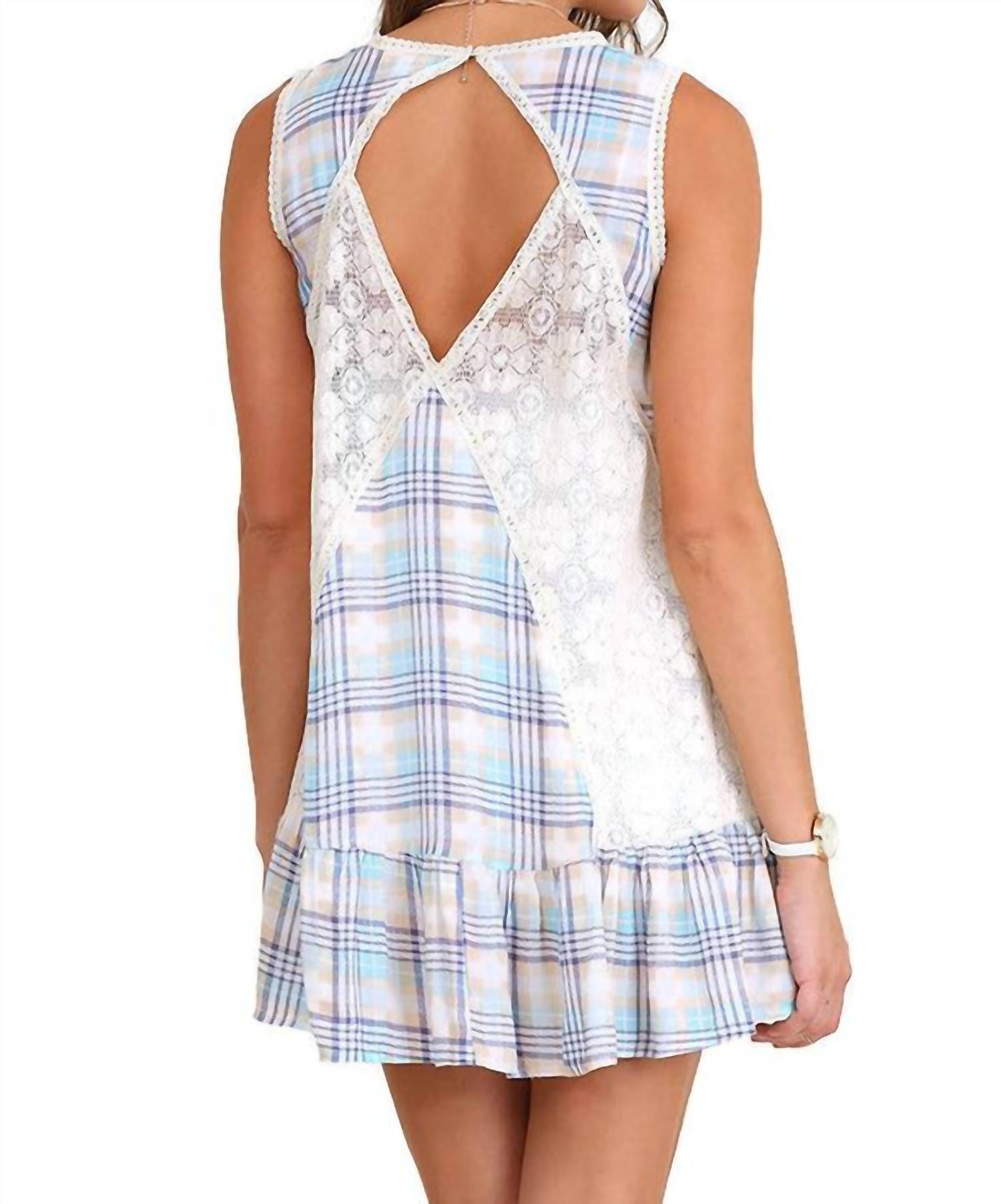 Umgee - Plaid Sleeveless Lace Dress
