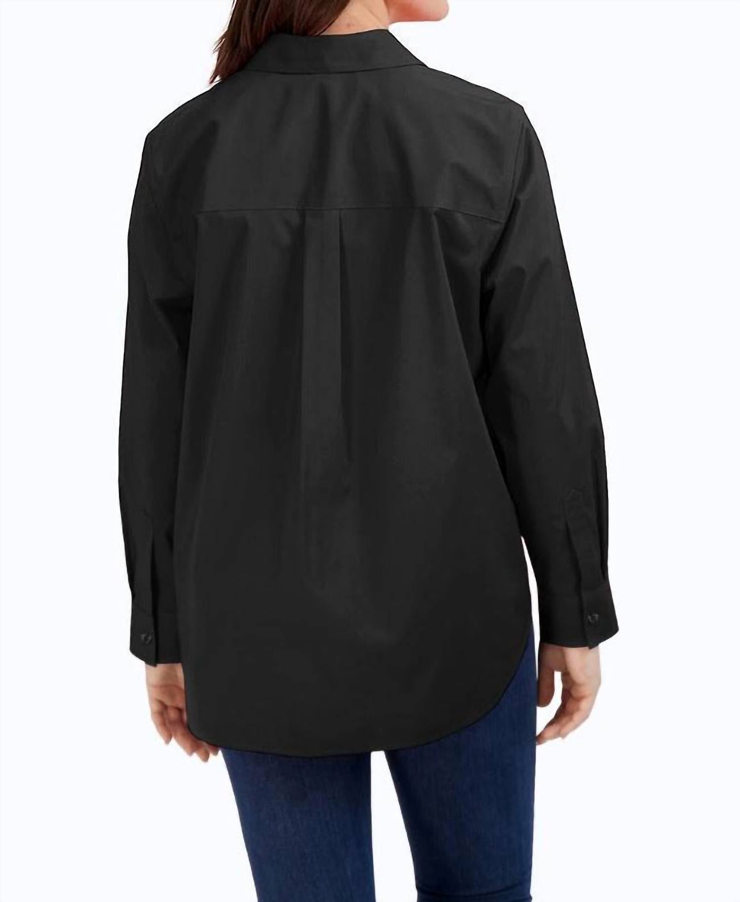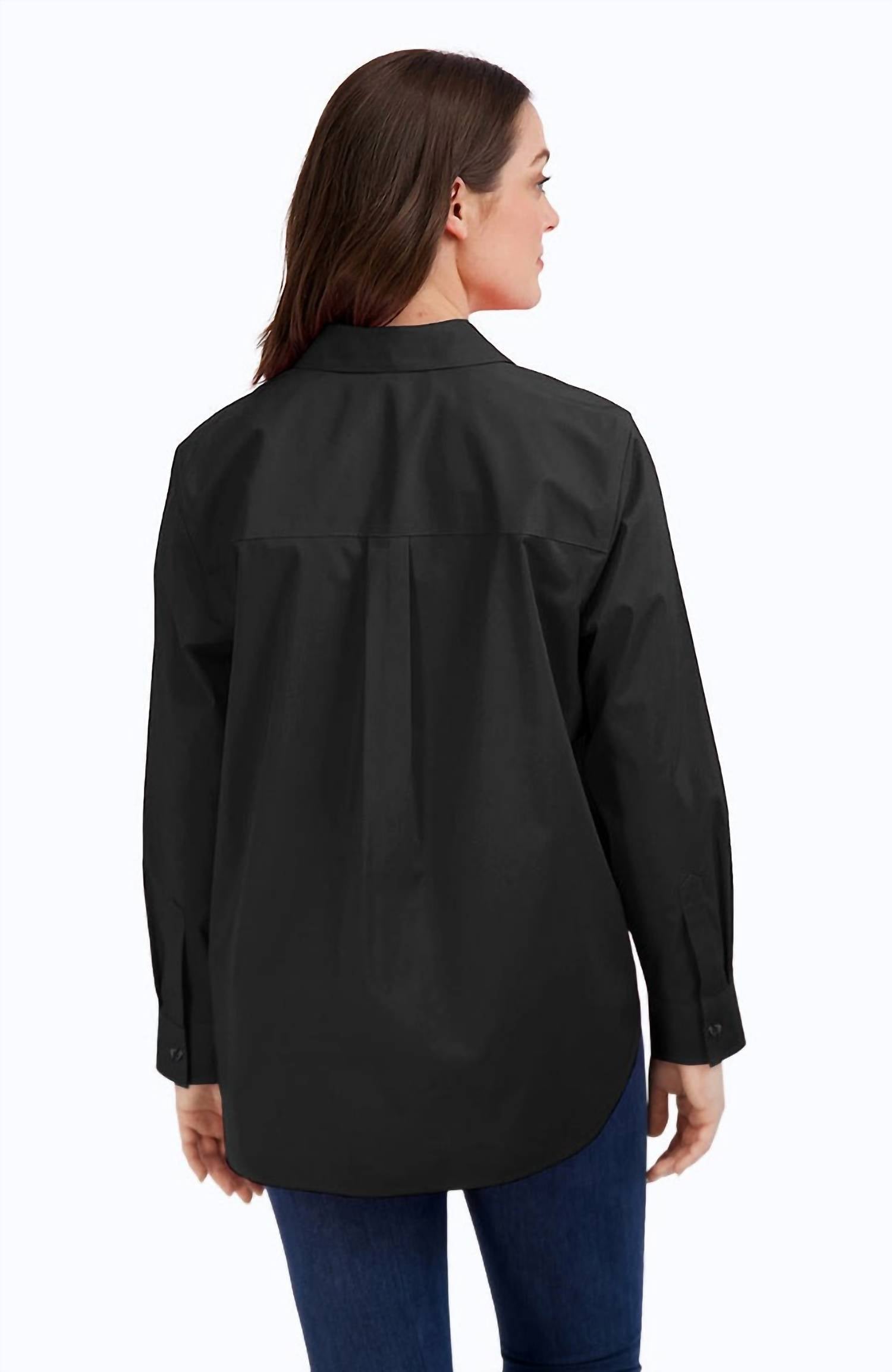 A perfect addition to any wardrobe, this classic tunic style blouse is flattering and effortless. You can easily transition from desk to dinner in this chic top. The Boyfriend Stretch No Iron Tunic Top by Foxcroft is a chic addition to any wardrobe. This tunic features long sleeves and a point collar, complemented by a straight placket and shirttail hem for a polished look. Composed of a cotton blend with 65% cotton, 30% polyester, and 5% spandex, it offers a flawless and smooth appearance without the need for ironing. Closure: Button closure. Embrace this solid pattern piece, perfect for a spring dinner party occasion.