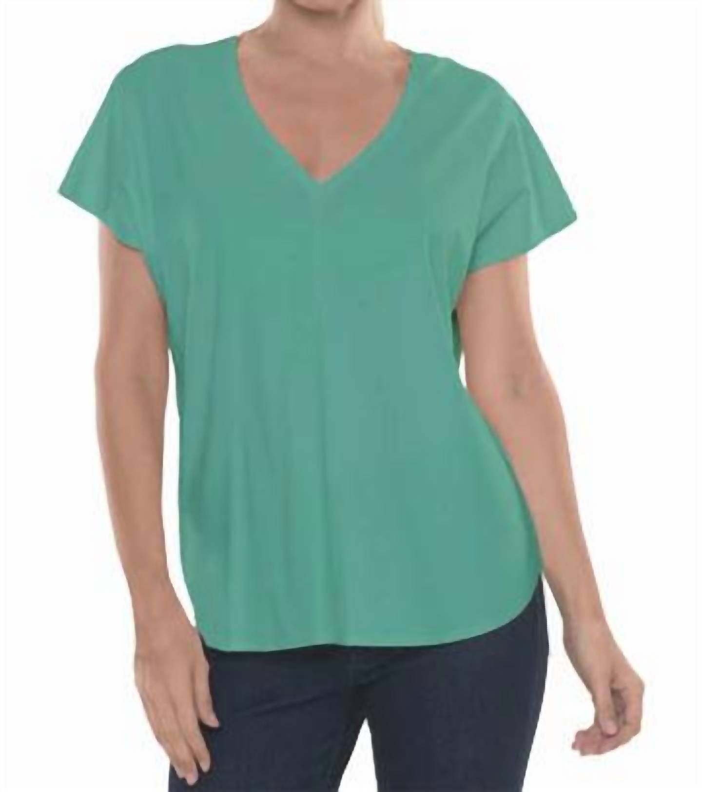 The short sleeve tee you'll want in every color. Upgrade your summer wardrobe with the Zoe Center Seam Top by LIOR, a chic and sophisticated piece in a refreshing seafoam shade. This women's short sleeve tunic is expertly crafted from a Ponte knit fabric with a composition of 60% Cotton, 33% Polyamide, and 7% Spandex, ensuring a no-cling fit while retaining its elegant V-neck silhouette. Featuring a pull-on closure for easy wear, this solid pattern top epitomizes versatile vacation apparel. Maintain its pristine look with care instructions that include hand washing in cold water, laying flat to dry, and ironing on a low setting.