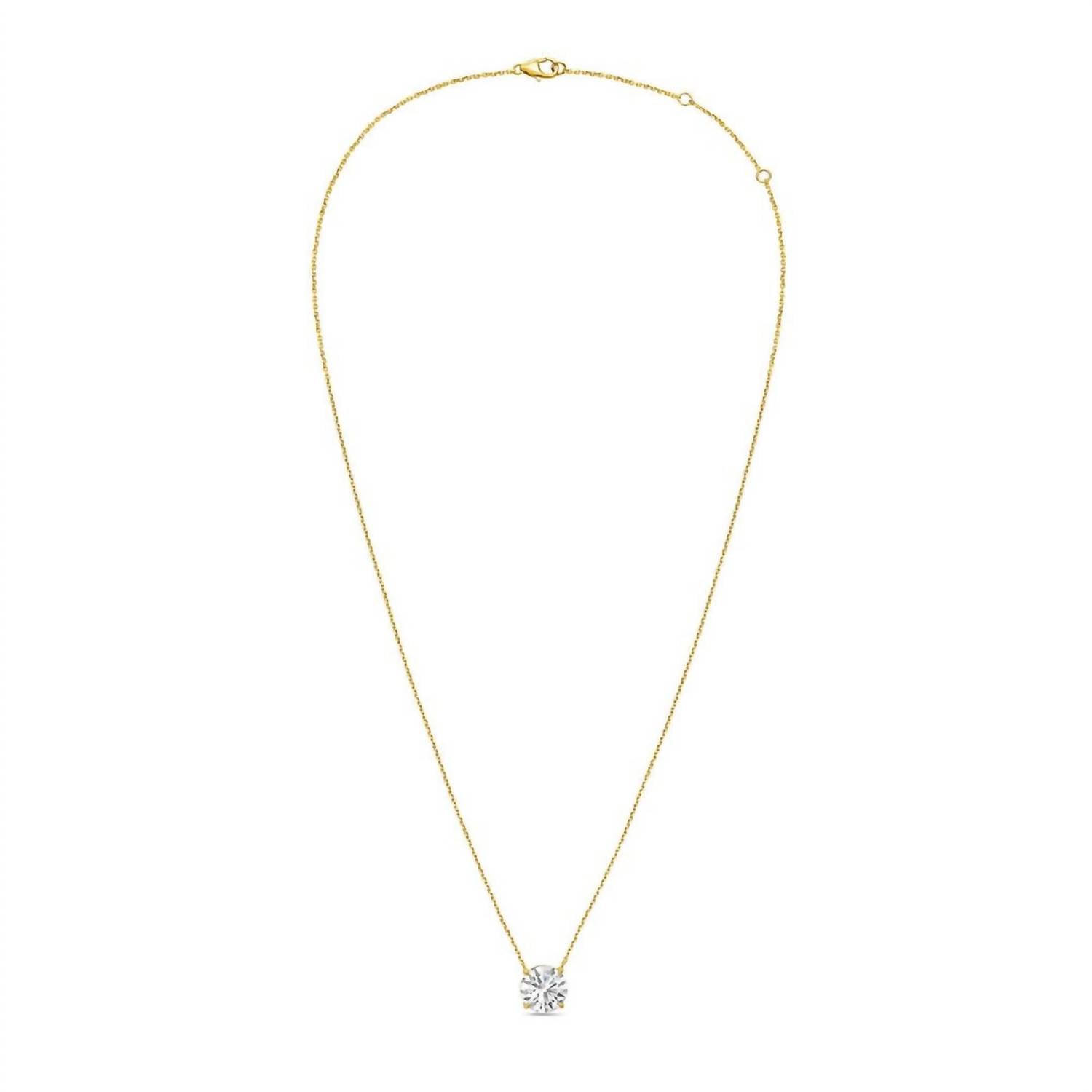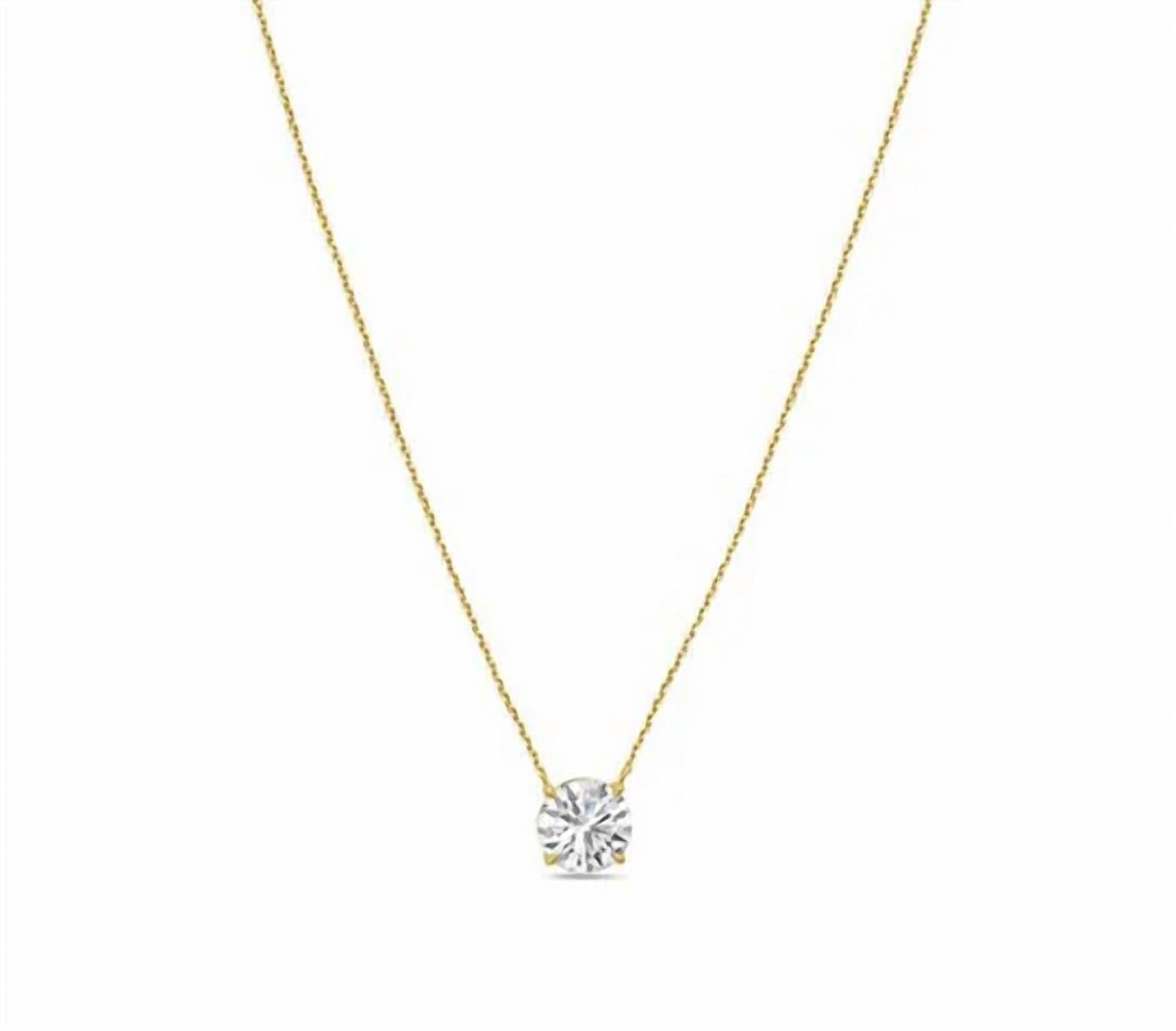 Layer this necklace or wear it on its own. Either way it's a win-win. Discover timeless elegance with the 4.00 Cts Lab Grown Diamond Solitaire Pendant Necklace by Diana M Jewels. Crafted from luxurious 14k yellow gold, this fine piece features a dazzling round brilliant diamond, showcasing 4 carats of lab-grown perfection with DEF color and VS clarity. The pendant is securely set in a four-prong setting and suspended from a 16 to 18-inch chain, fastening with a convenient lobster clasp. Ideal for an April birthstone, its excellent cut ensures maximum sparkle and brilliance.