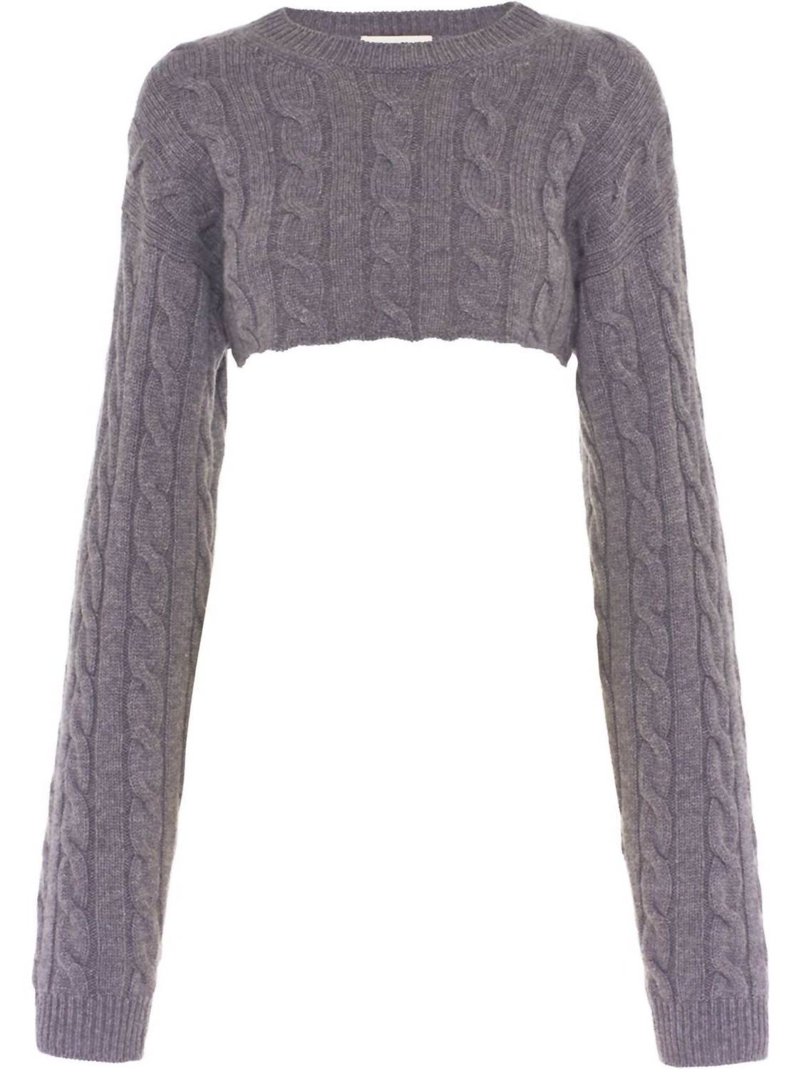 Featuring cable knit, crew neck, long sleeves and cropped. Fabric: 100% Cashmere. Dry clean. Model is wearing size 40.