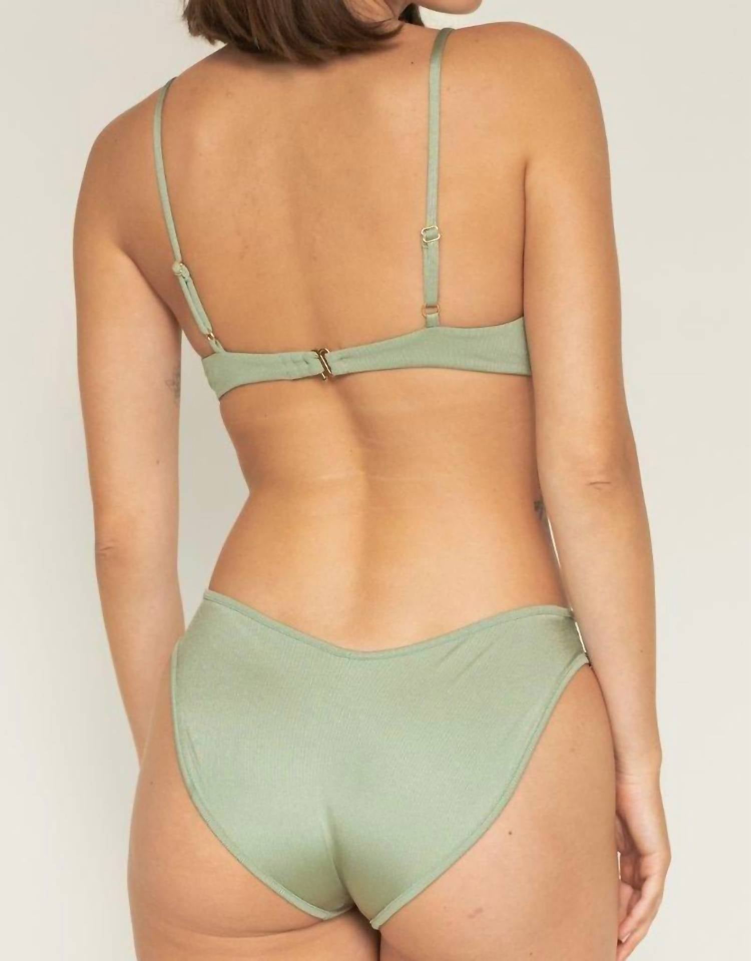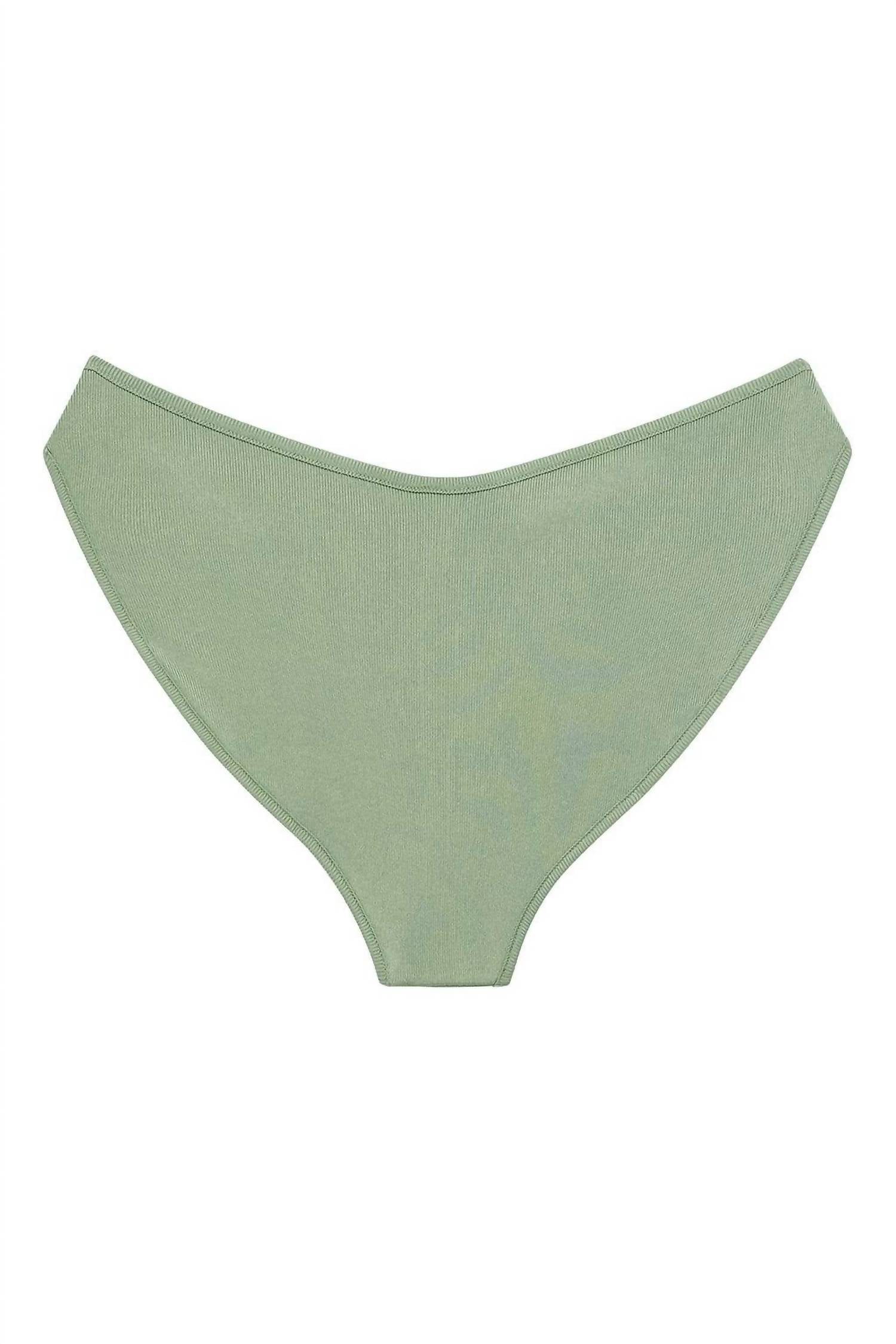 Ideal for relaxed poolside moments, this adorable swimsuit effortlessly transitions into the perfect sunset dinner outfit when paired with a flowing skirt. Discover the Added Coverage Lulu Bikini Bottom by Montce, a stylish swim bottom designed with women in mind. In a sage green rib, this bikini combines a retro style silhouette with a high cut that elongates the leg for a universally flattering fit. Crafted from silky fabric, it consists of 80% nylon and 20% spandex, featuring OEKO-TEX certified fabric for peace of mind. This medium low rise piece offers full coverage, perfect for those classic beach days. Care Instructions: Hand wash.