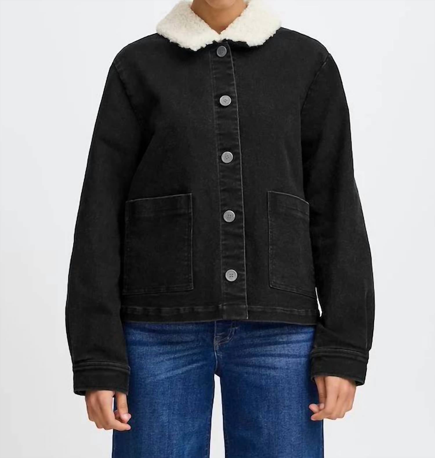 Embrace the chill with the IHJEANANNE Jacket by ICHI, crafted for stylish warmth in a Washed Black hue. This long-sleeve jacket is constructed from a cozy cotton blend and showcases a chic bomber-inspired silhouette. Closure: Button closure. Care: Dry clean only. Featuring an elegant lined collar and two front pockets, this piece is both functional and fashionable.