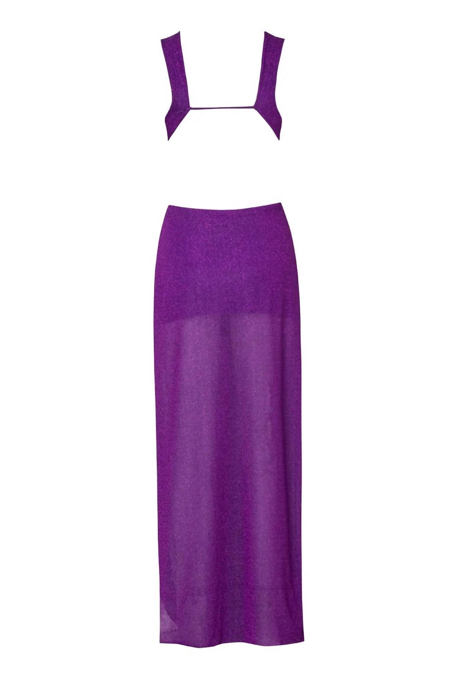 Style this maxi with your favorite statement necklace and sandals for the perfect look. The Rio Glossy Dress by BAOBAB is a stunning purple maxi dress, designed for those sun-kissed vacation days. Featuring a sleeveless, sheath silhouette with a deep V-neck and alluring open back, this dress is crafted from a blend of 80% polyester and 20% elastane. Made in Colombia, it offers an elegant textured pattern, highlighted by metallic threading and captivating side cut-outs. Easy to wear with its pull-on styling, this garment promises a sleek, figure-flattering fit, and is best cared for with hand washing and laying flat to dry.