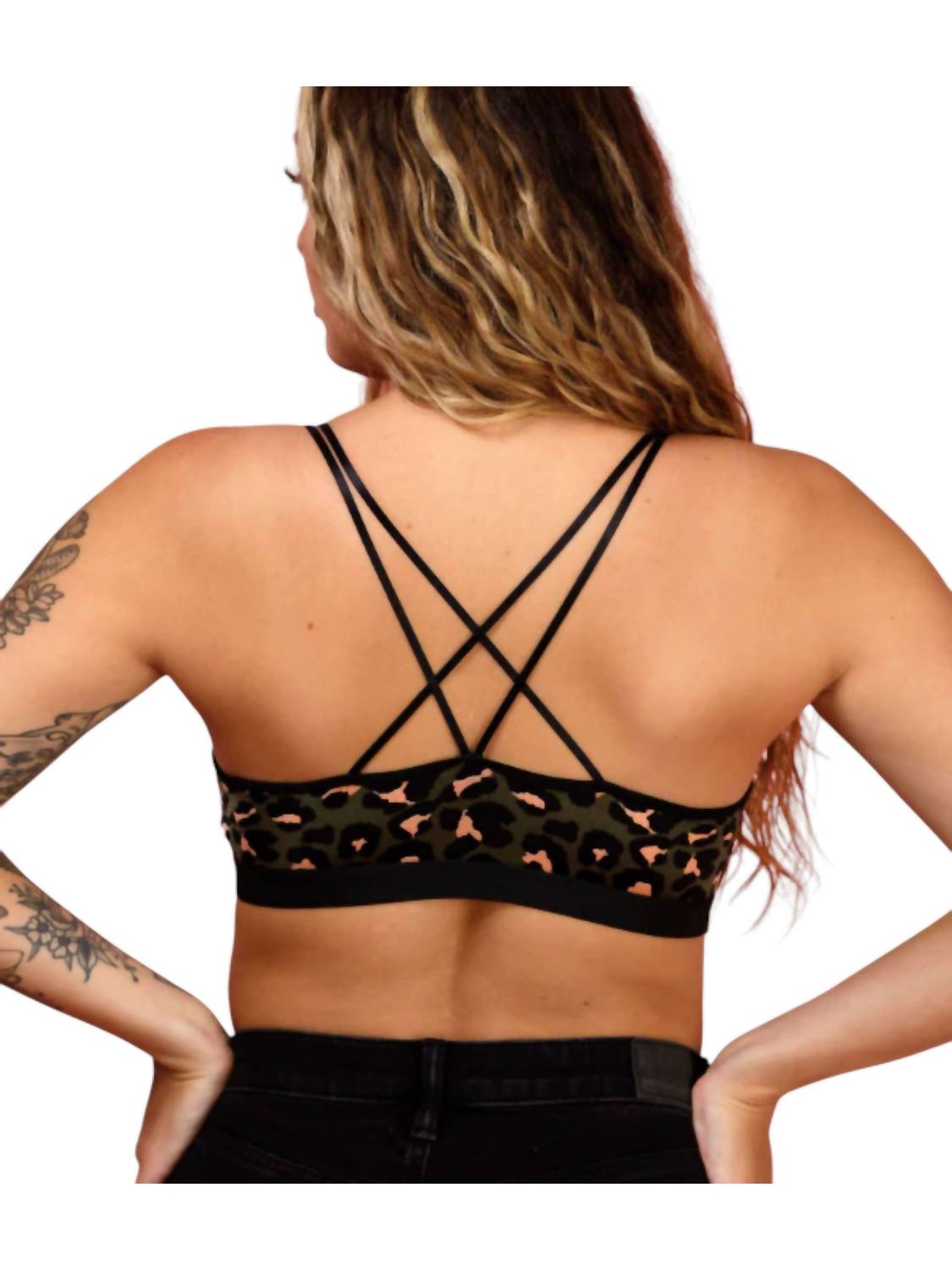 Splash of wild sophistication in striking Black/Olive. Crafted with a composition of 90% Nylon and 10% Spandex. Offers a super stretchy and comfortable fit, ensuring ample lift and support. Criss-cross straps in the back and removable Unipad design. Flexible sizing.
