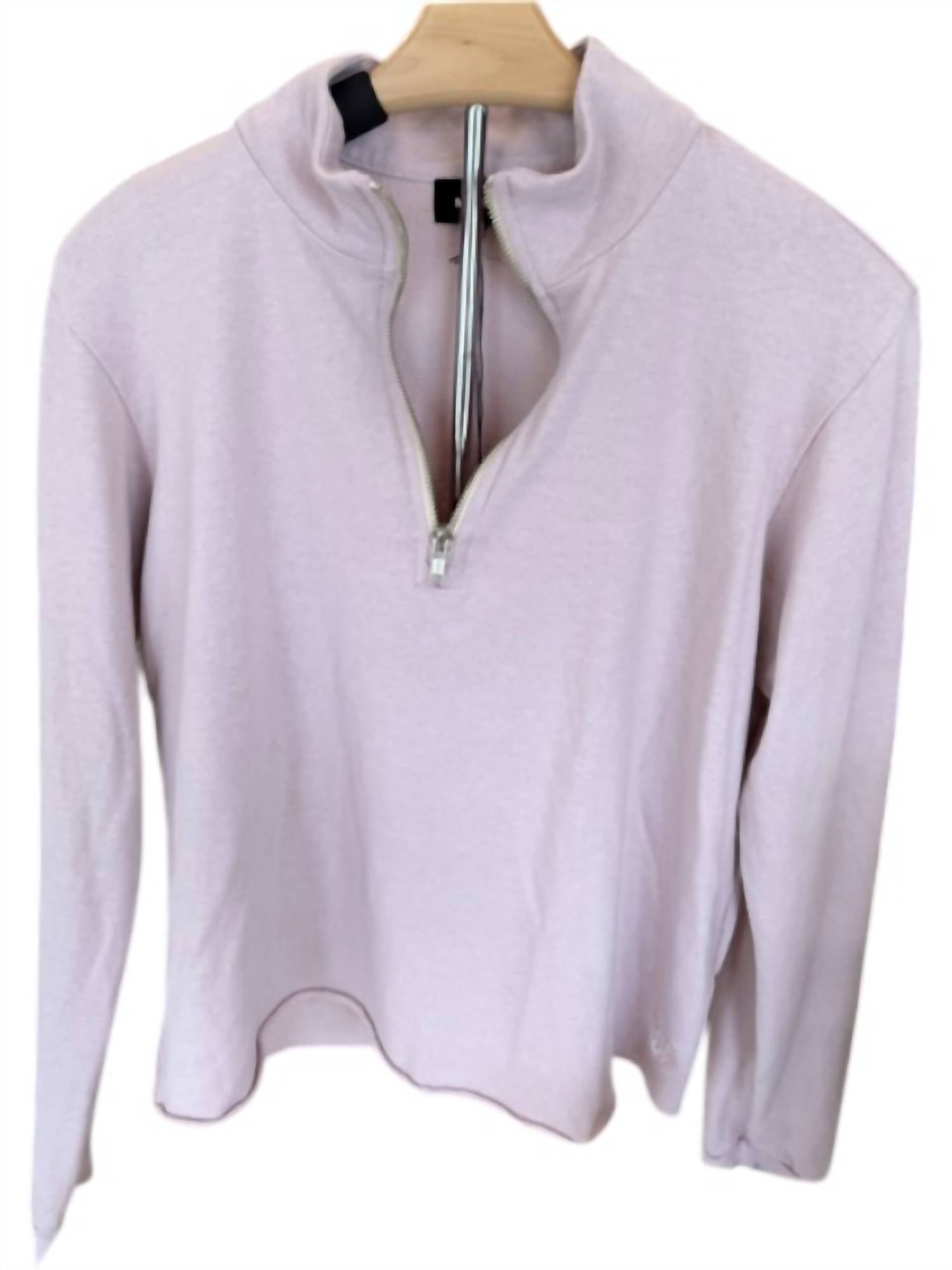 Cooler temps call for layering and we love this adorable sweatshirt for all the obvious reasons. Stylish women's pullover in Chalk Pink. Designed with long sleeves. Crafted from a blend of 50% Polyester, 28% Cotton, and 12% Rayon. Offers comfort and a touch of warmth with its mid-weight drapey fleece. Cropped, boxy fit, accented with a raw edge bottom hem and ribbed cuffs, gives it a deconstructed, easygoing style. Featuring a convenient zip closure and collar neckline. Hand wash.