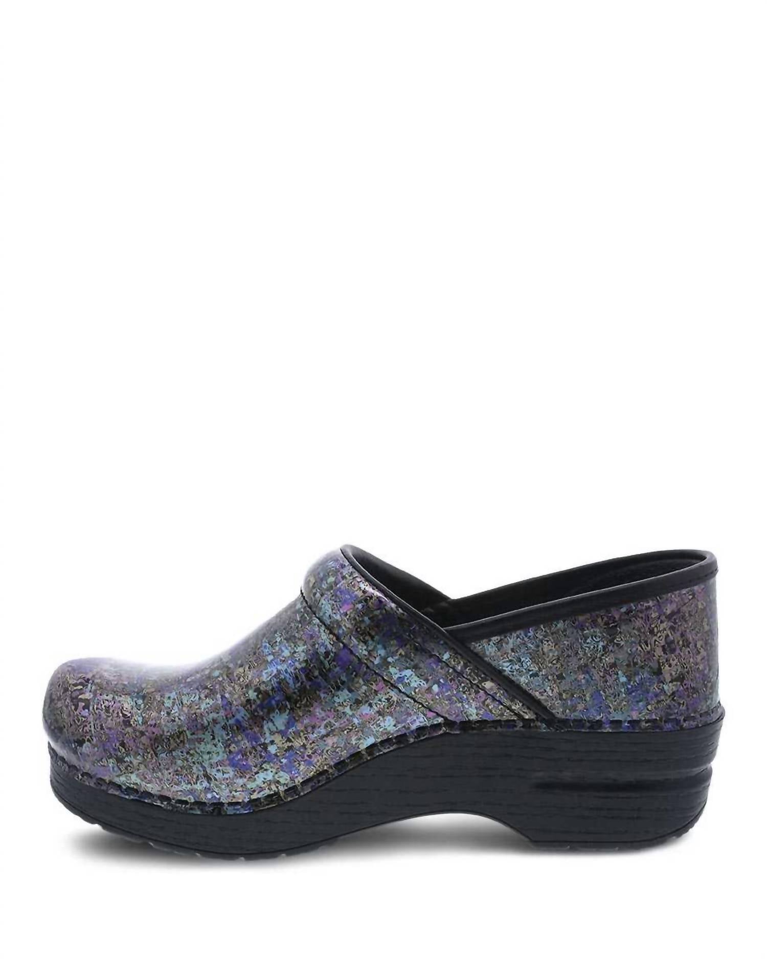 Elevate your workwear with the Women's Professional Patent Shoes by Dansko in a striking Metallic Ink. Crafted with patented stapled construction, these shoes feature leather and/or fabric uppers for durability and style. The padded instep collar and roomy reinforced round toe ensure maximum comfort and protection, while the PU outsole with a rocker bottom provides enhanced shock absorption. Designed with a wide heel strike for stability, these 2-inch block heels are perfect for the office and engagement occasions.