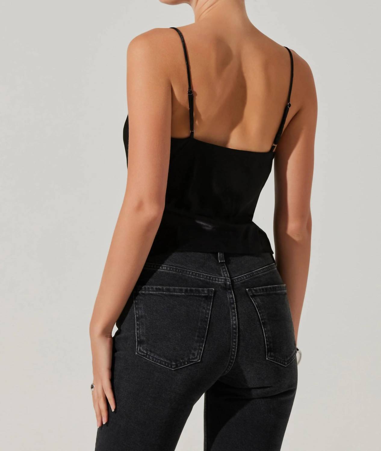 Introducing the ALITHEA TOP by ASTR, a staple camisole in sleek black for the modern woman. With its luxurious spaghetti straps and elegant cowlneck, this top exudes sophistication and exclusivity. Perfect for making a statement, its solid pattern adds a touch of timeless elegance. Crafted without closures, this piece effortlessly enhances any wardrobe, showcasing superior quality.