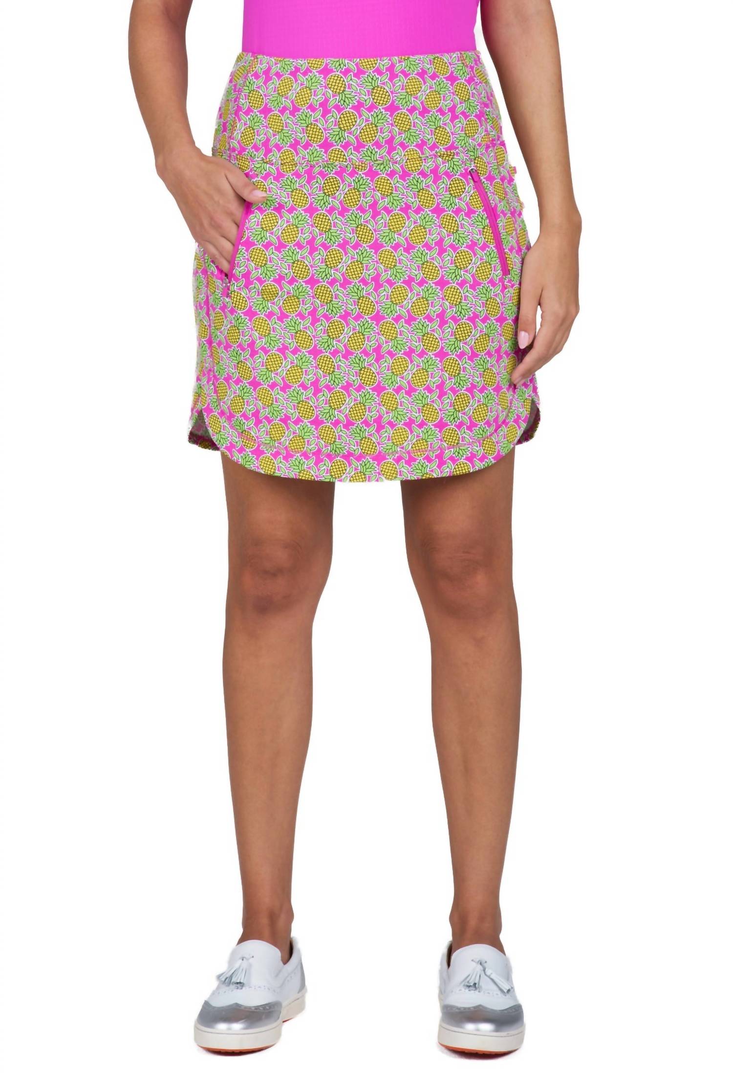 A skirt that you can do just about anything in? We love a good skort, especially this one! Meet the Chantal Print Straight Skort by IBKUL, a stylish and functional choice for your travel and leisure occasions. Crafted from 92% Nylon and 8% Polyurethane, this skort comes with a zip closure and features zip pockets on the front, an invisible rear pocket, and two inner short liner pockets for secure storage. The patented IceFil Cooling Technology fabric, offering UPF 50+ sun protection, keeps you cool by lowering skin temperature up to 5 degrees, while its moisture-wicking and antimicrobial properties ensure you remain fresh and dry. Care for this hot pink/lime streetwear essential is easy with machine wash instructions.